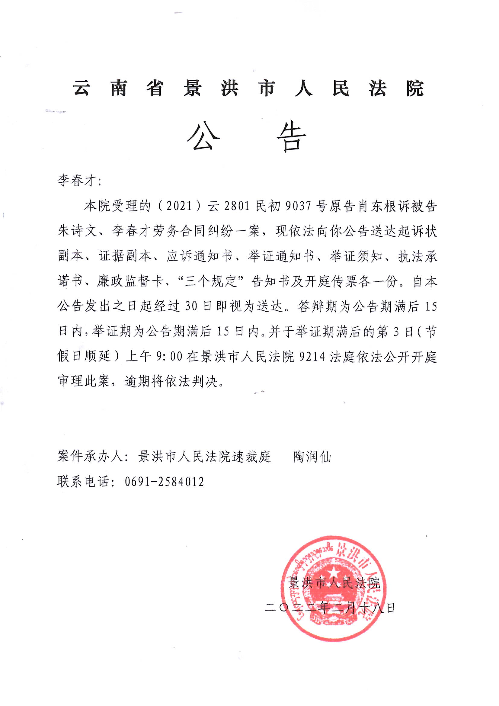 李春才(传票公告)