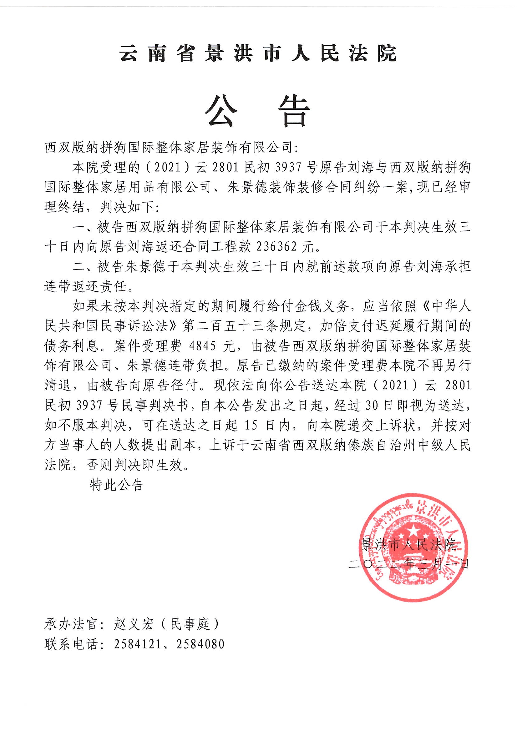 西双版纳拼狗国际整体家居用品有限公司(判决)