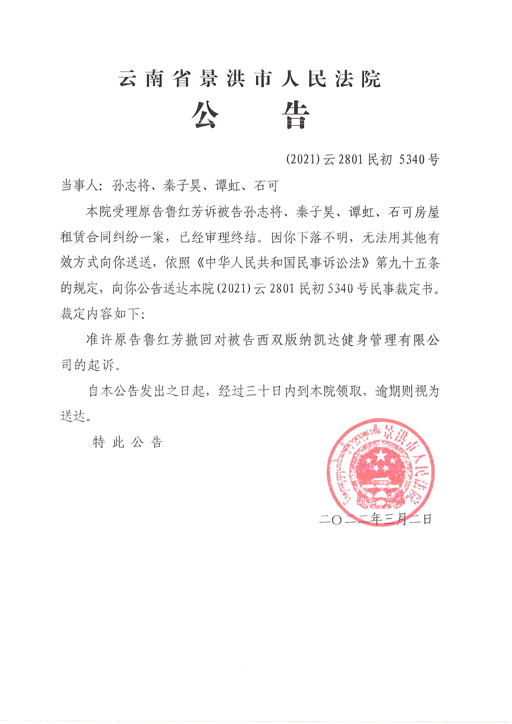 孙志将、秦子昊、谭虹、石可(撤诉)