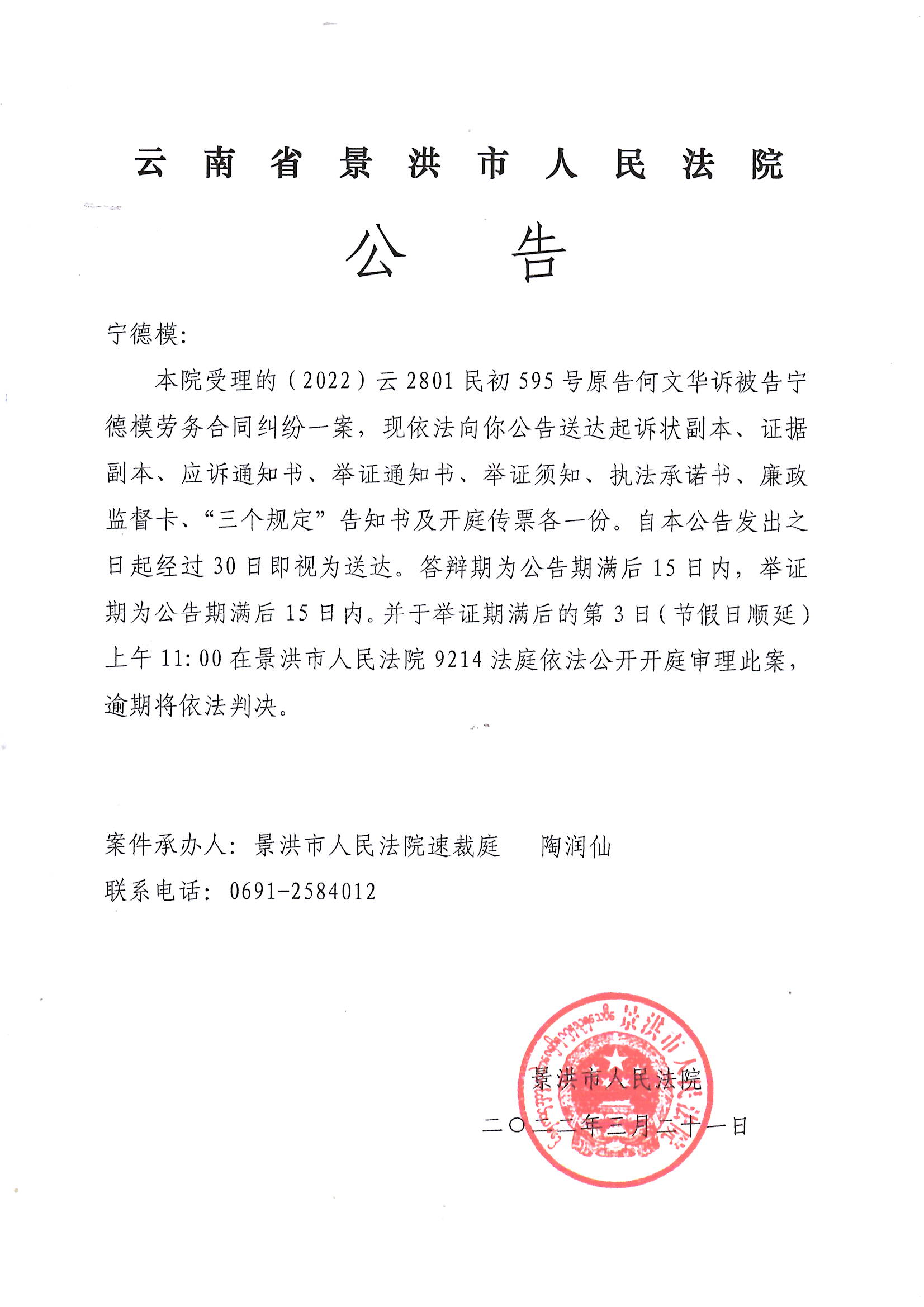 宁德模(传票公告)