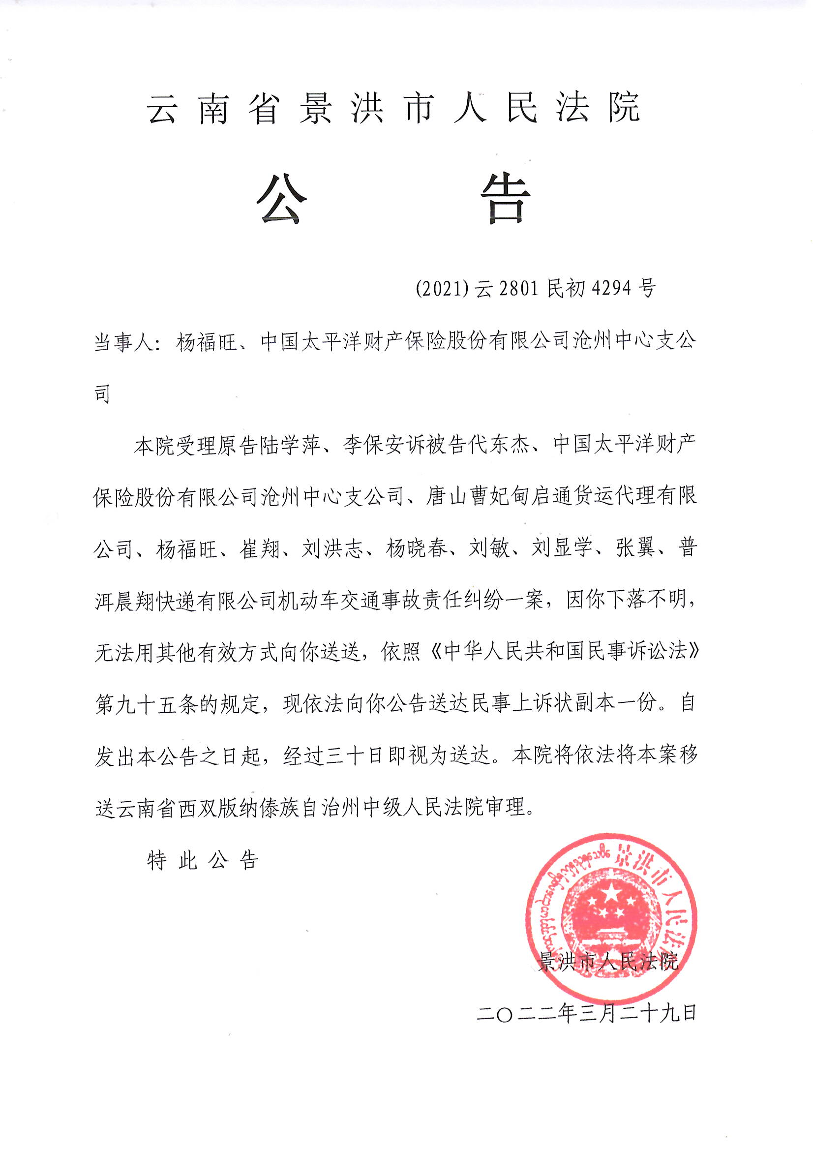 杨福旺、中国太平洋财产保险股份有限公司沧州中心支公司(上诉)