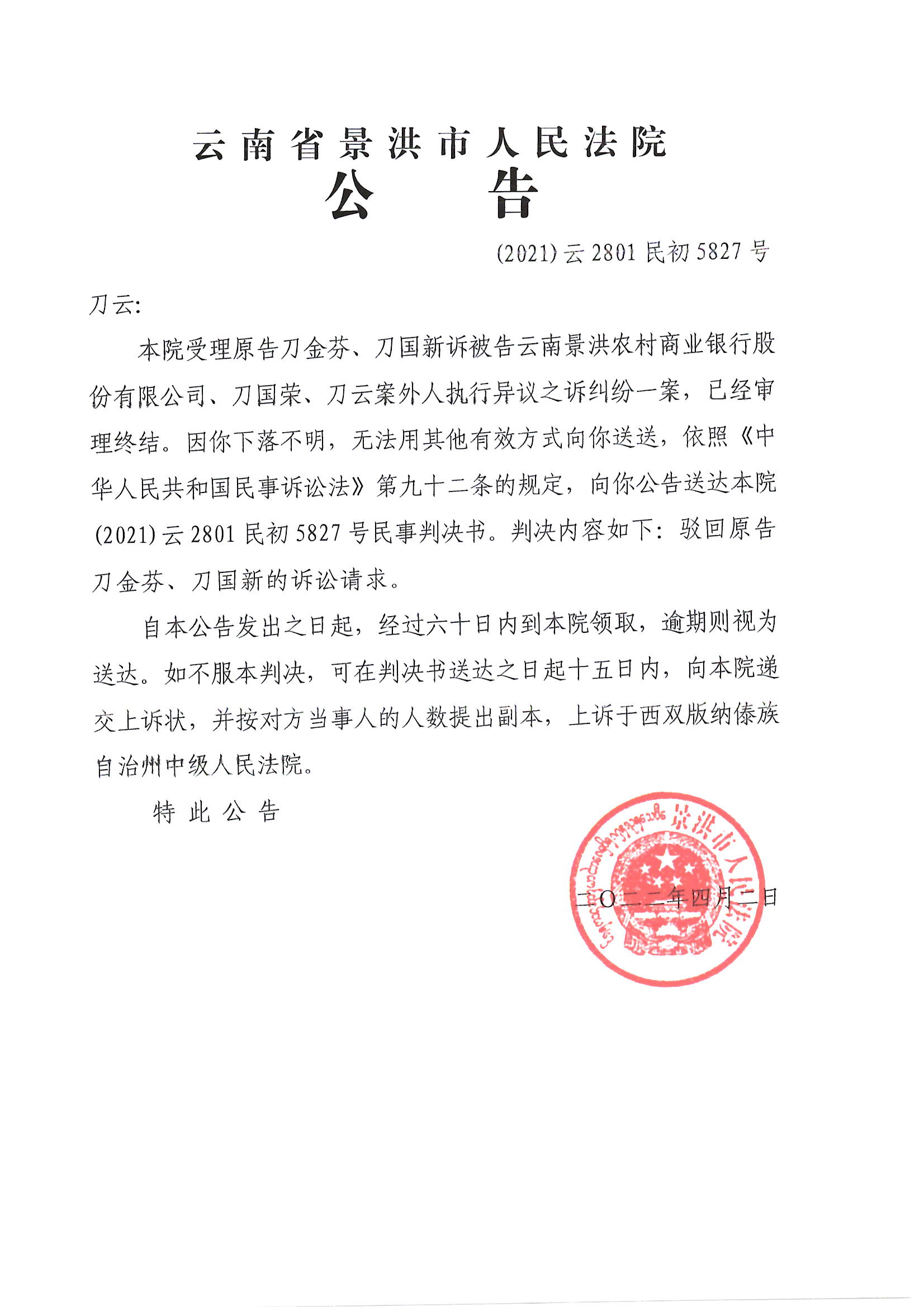 刀云(判决公告)