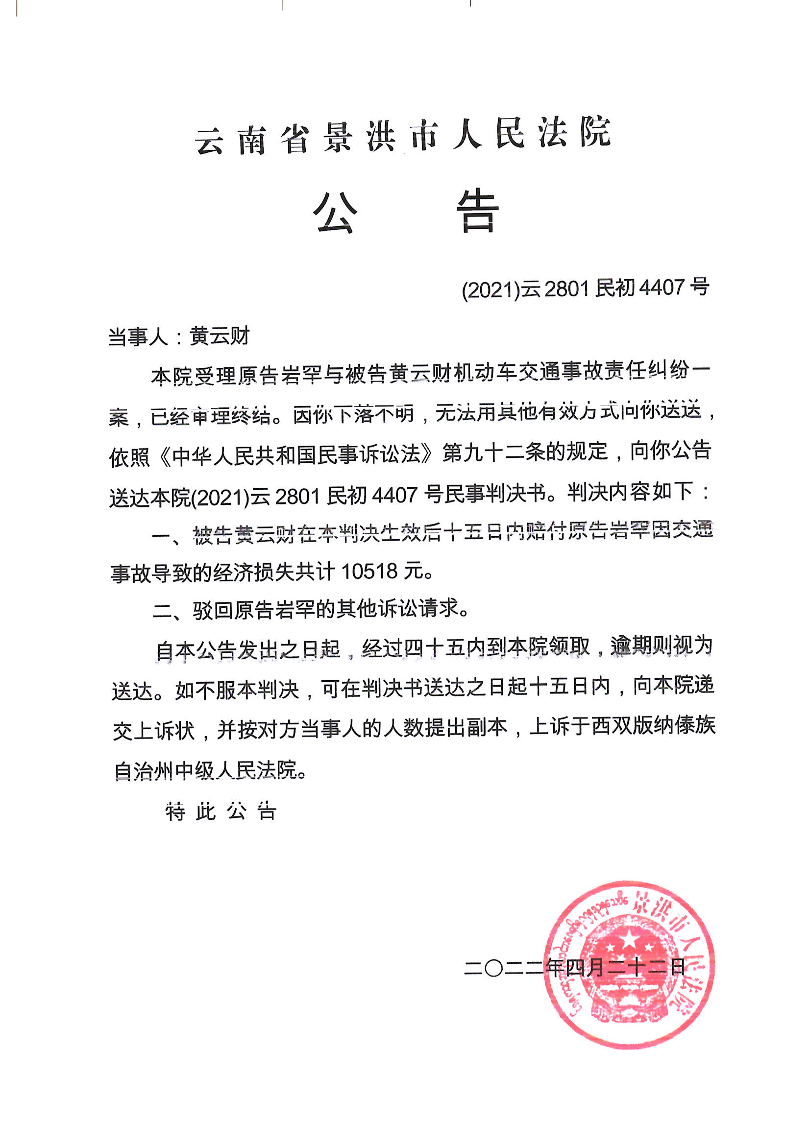 黄云财(判决公告)