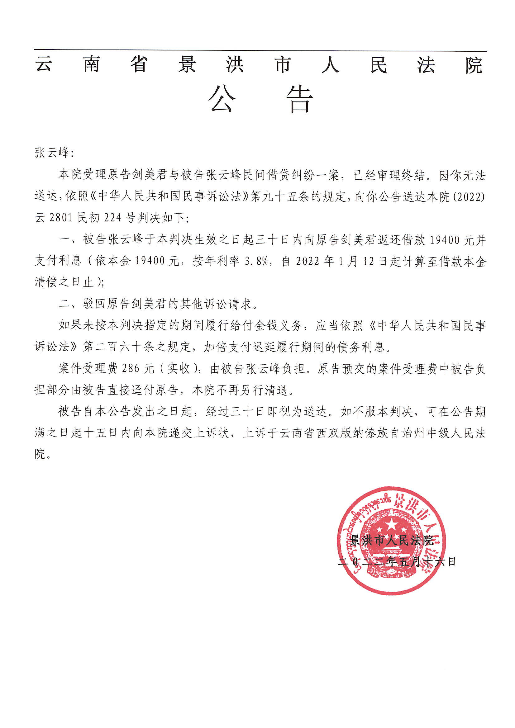 张云峰(判决公告)