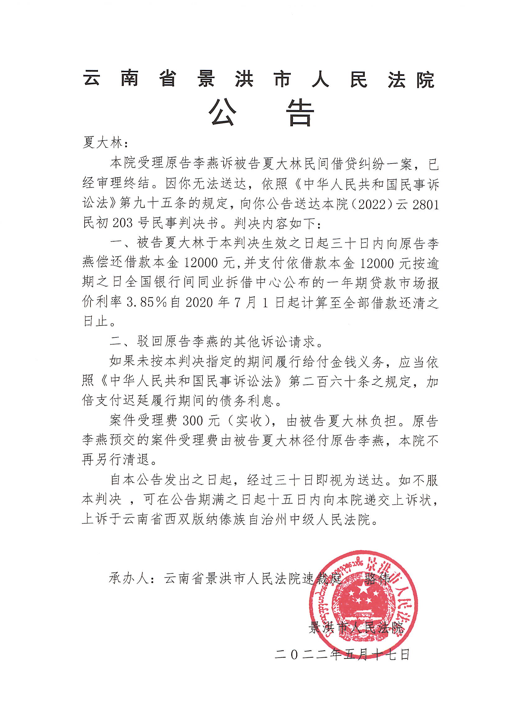 夏大林(判决公告)