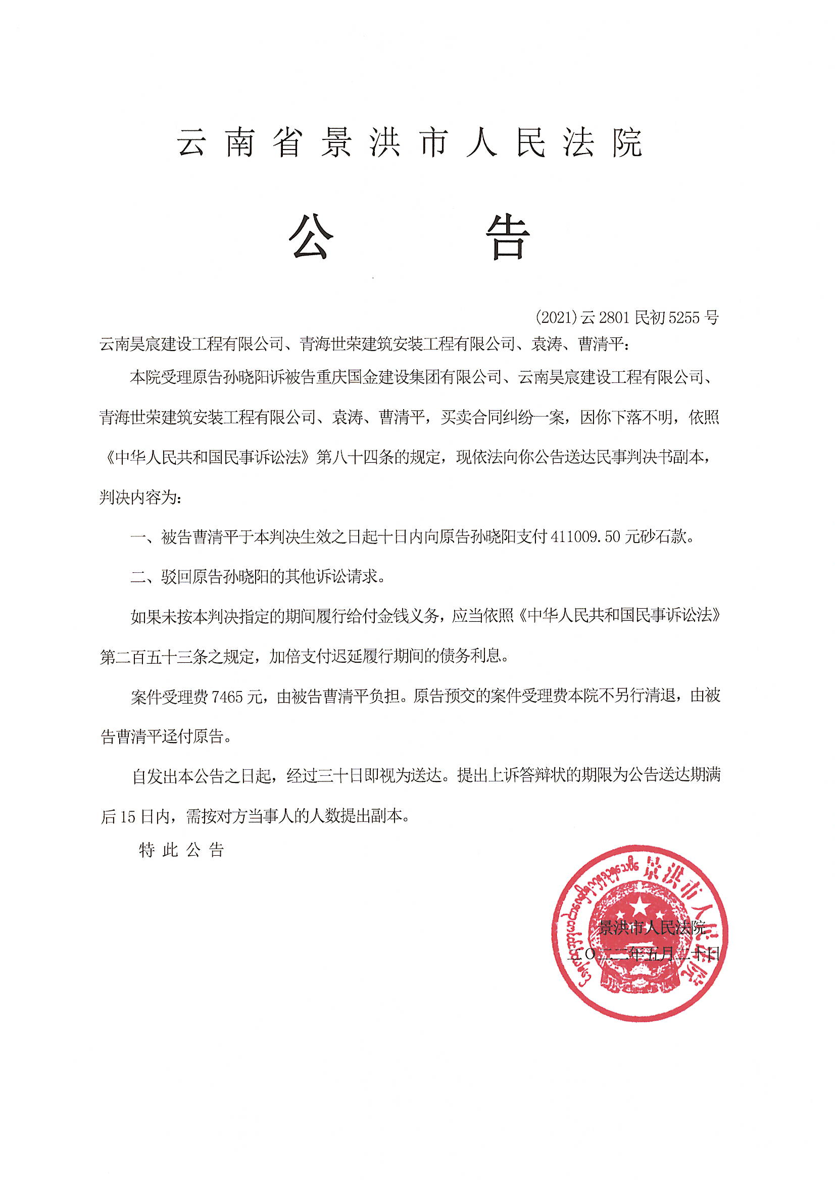 云南昊宸建设工程有限公司、青海世荣建筑安装工程有限公司、袁涛、曹清平(判决公告)