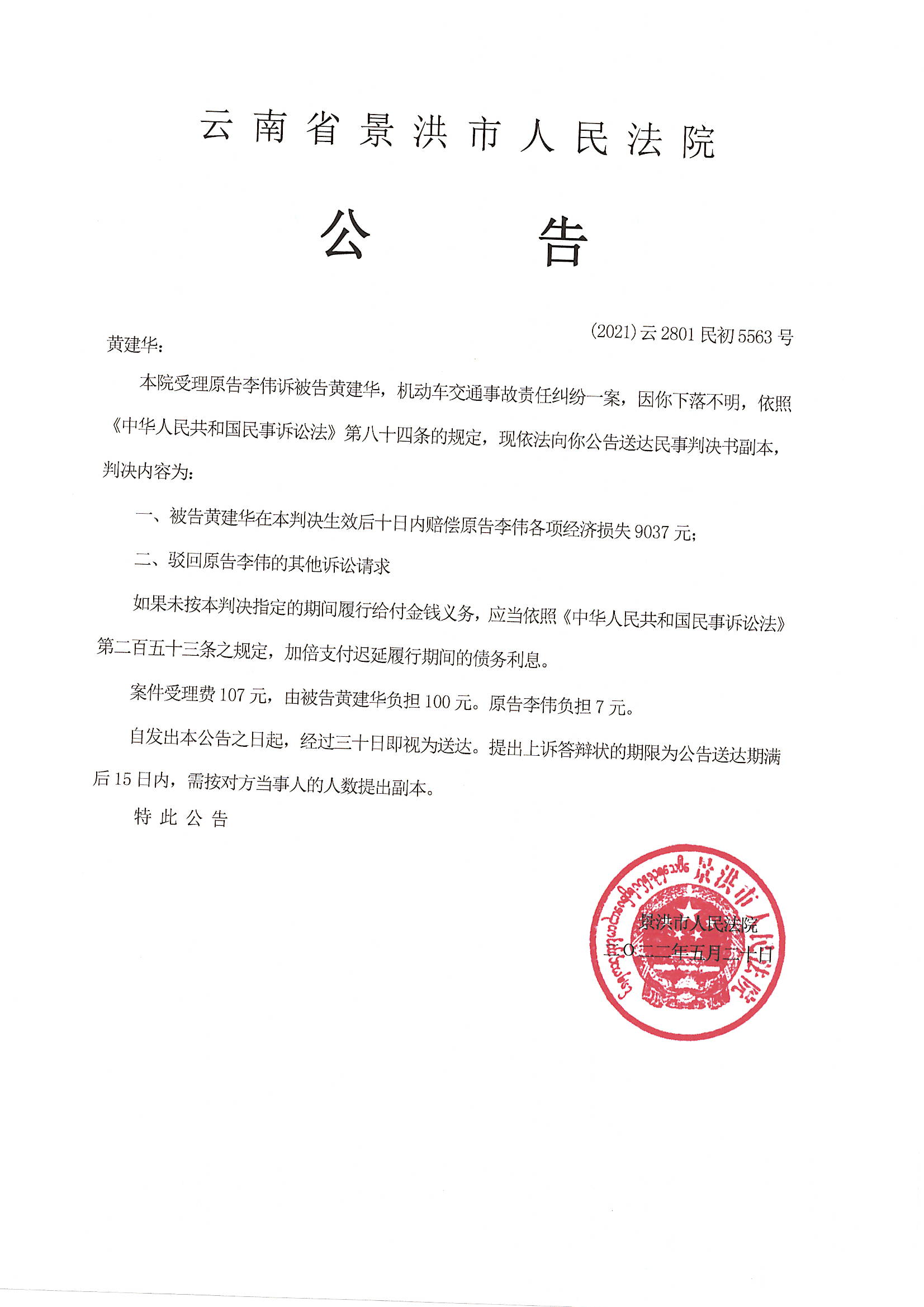 黄建华(判决公告)