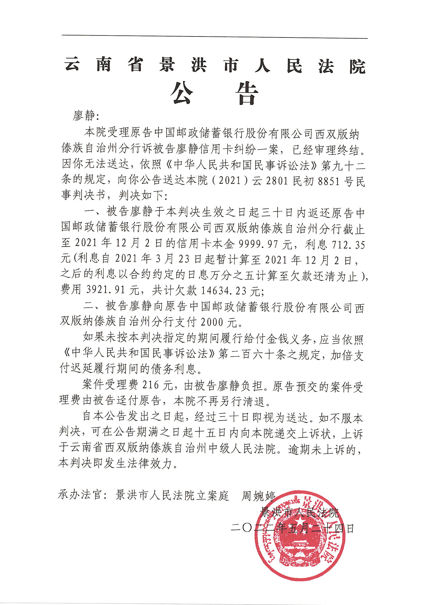廖静(判决公告)