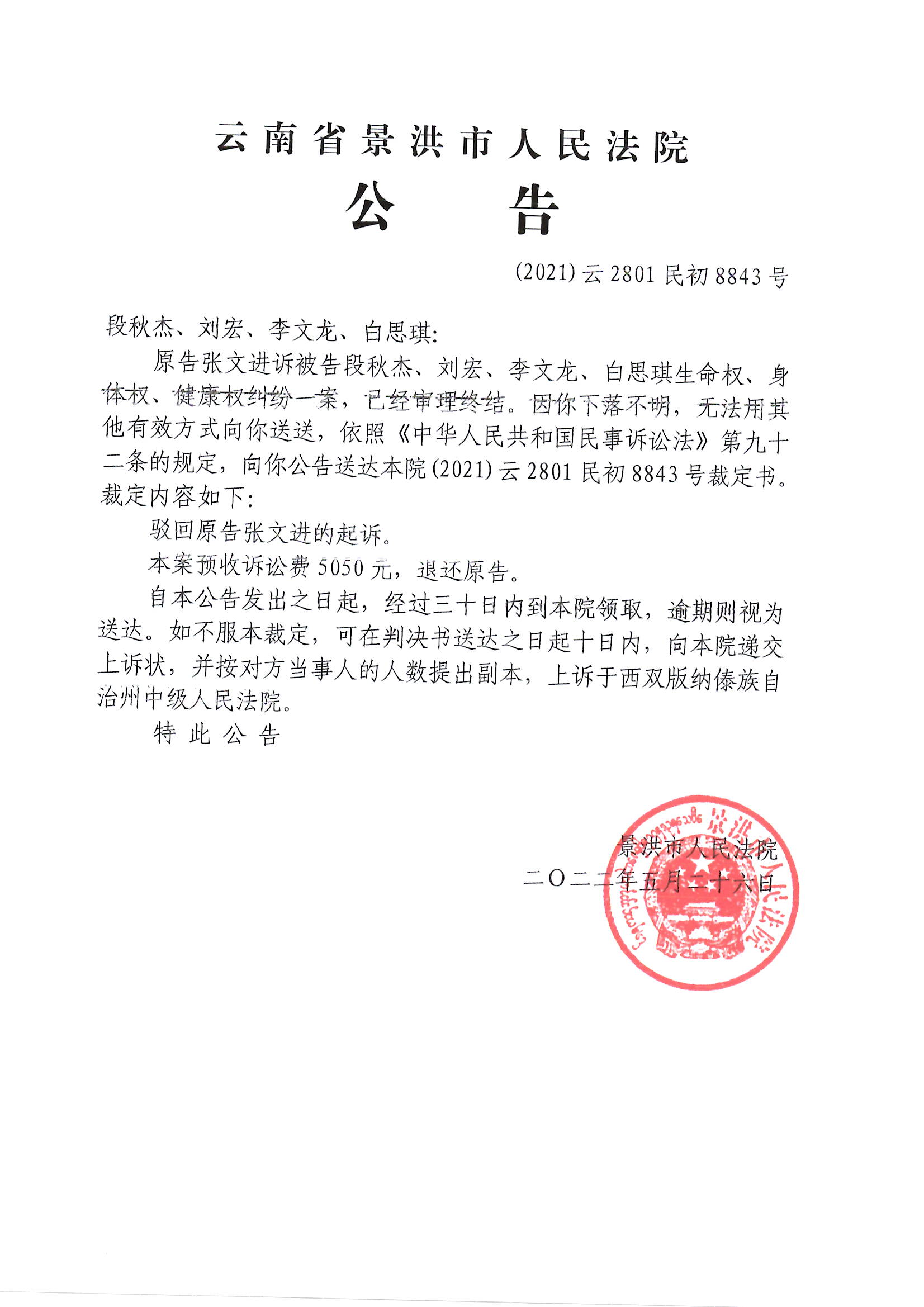 段秋杰、刘宏、李文龙、白思琪(裁定公告)