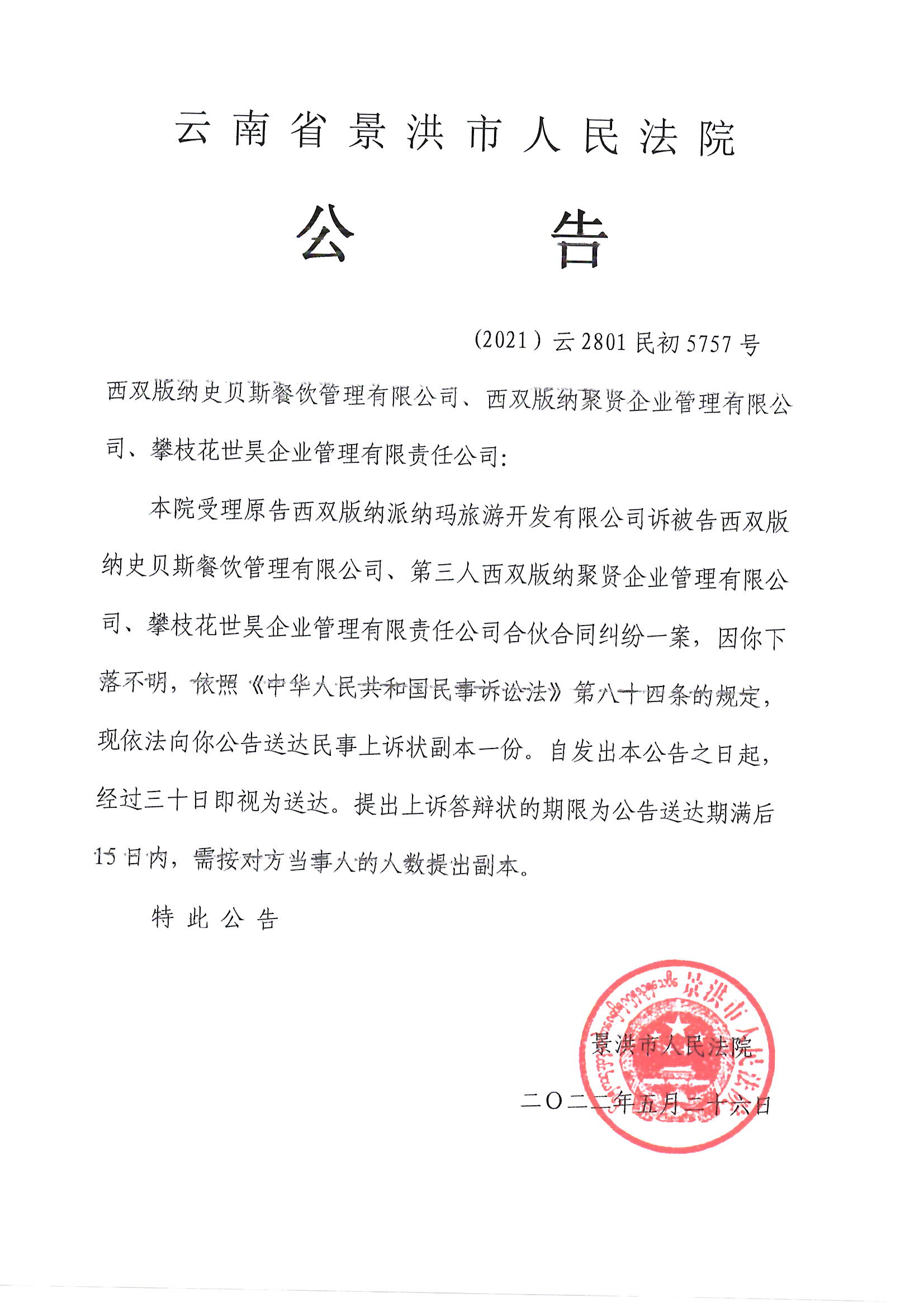 西双版纳史贝斯餐饮管理有限公司、西双版纳聚贤企业管理有限公司、攀枝花世昊企业管理有限责任公司(上诉公告