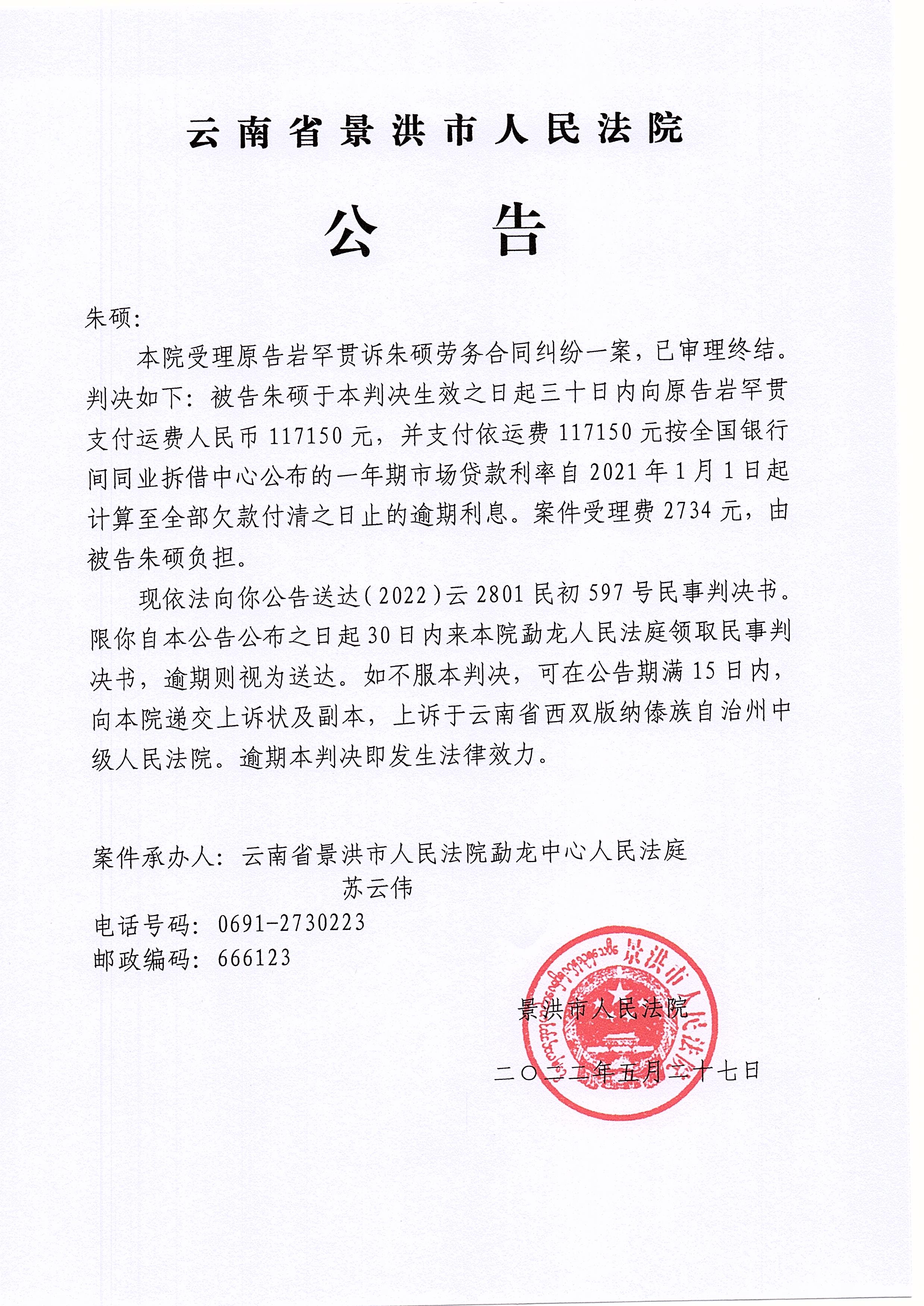 朱硕(判决公告)