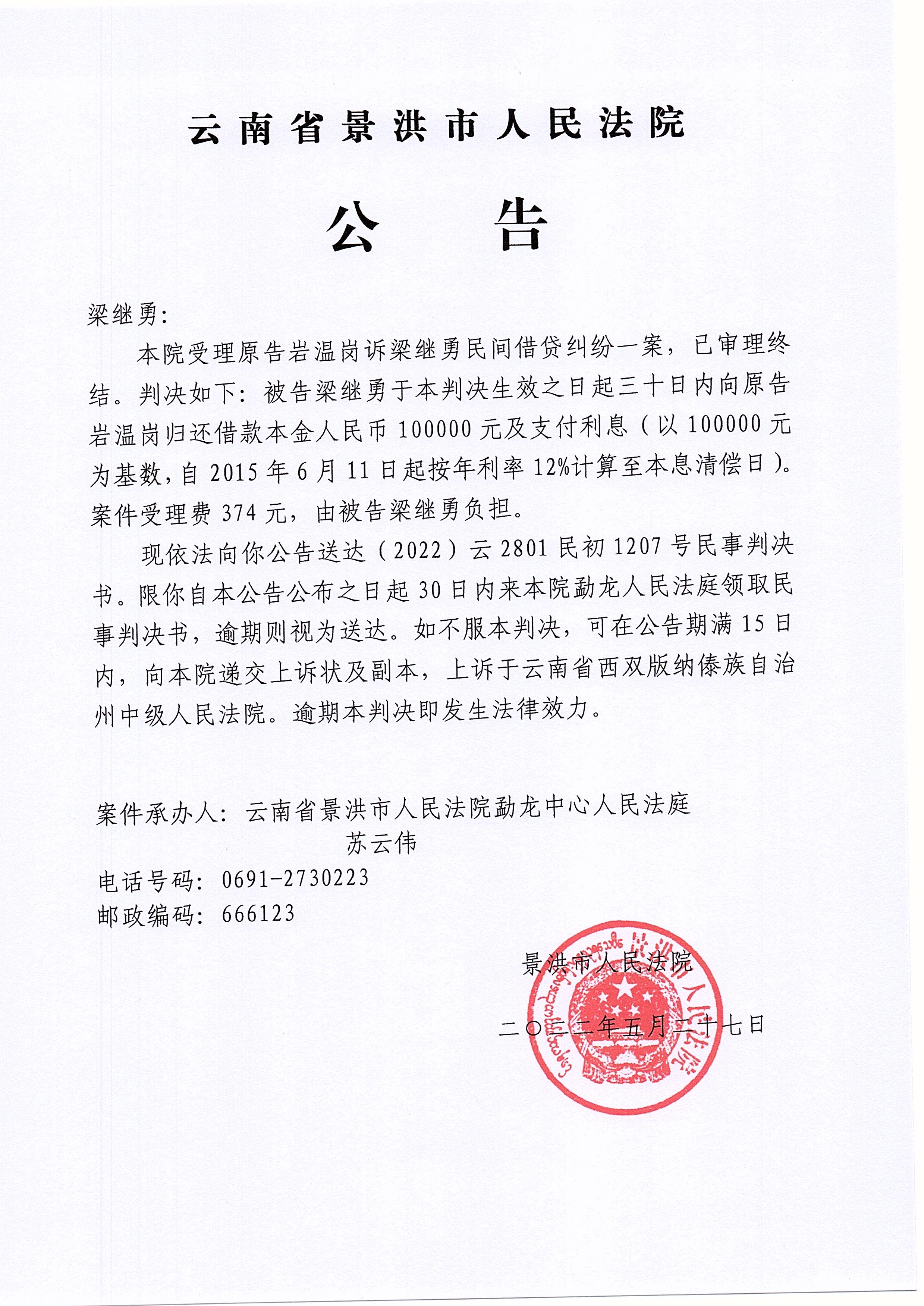作者 :景洪市人民法院勐龙人民法庭 来源:本站原创 访问次数 :