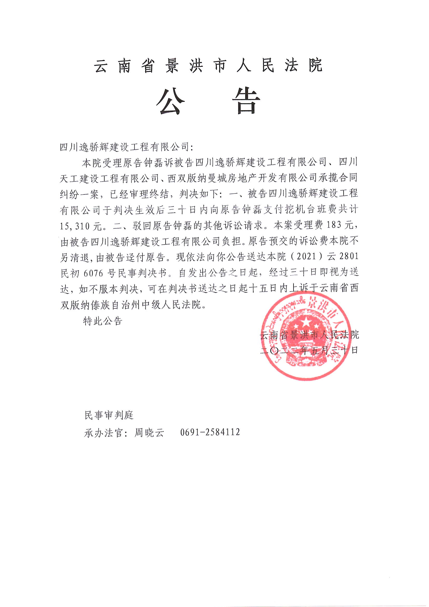 (公告判决)四川逸骄辉建设工程有限公司