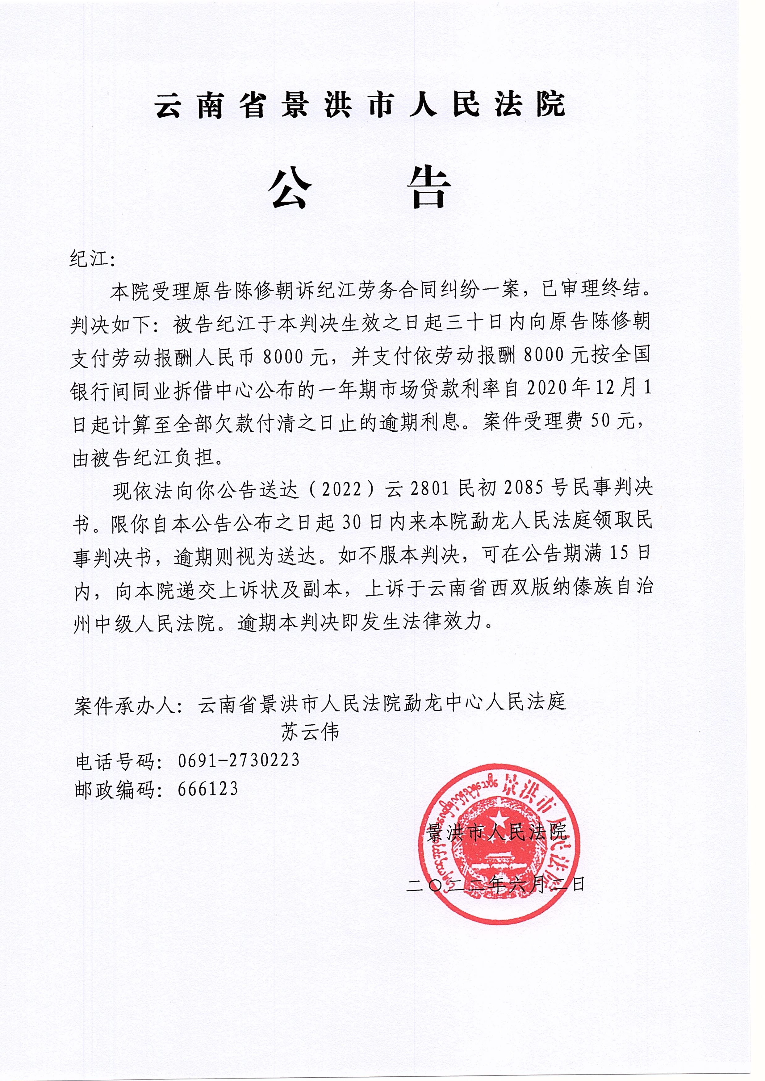 作者 :景洪市人民法院勐龙人民法庭 来源:本站原创 访问次数 :