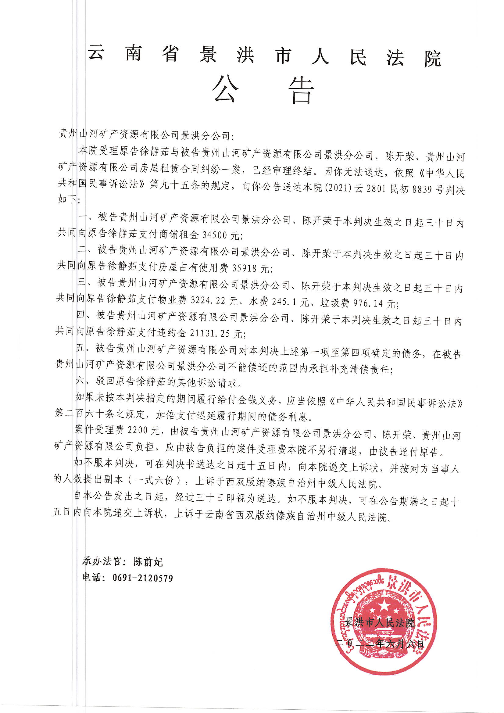 贵州山河矿产资源有限公司景洪分公司(判决)
