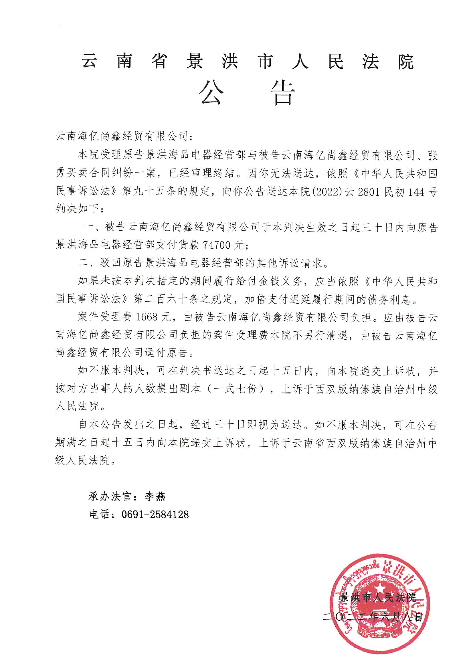 云南海亿尚鑫经贸有限公司(判决公告)