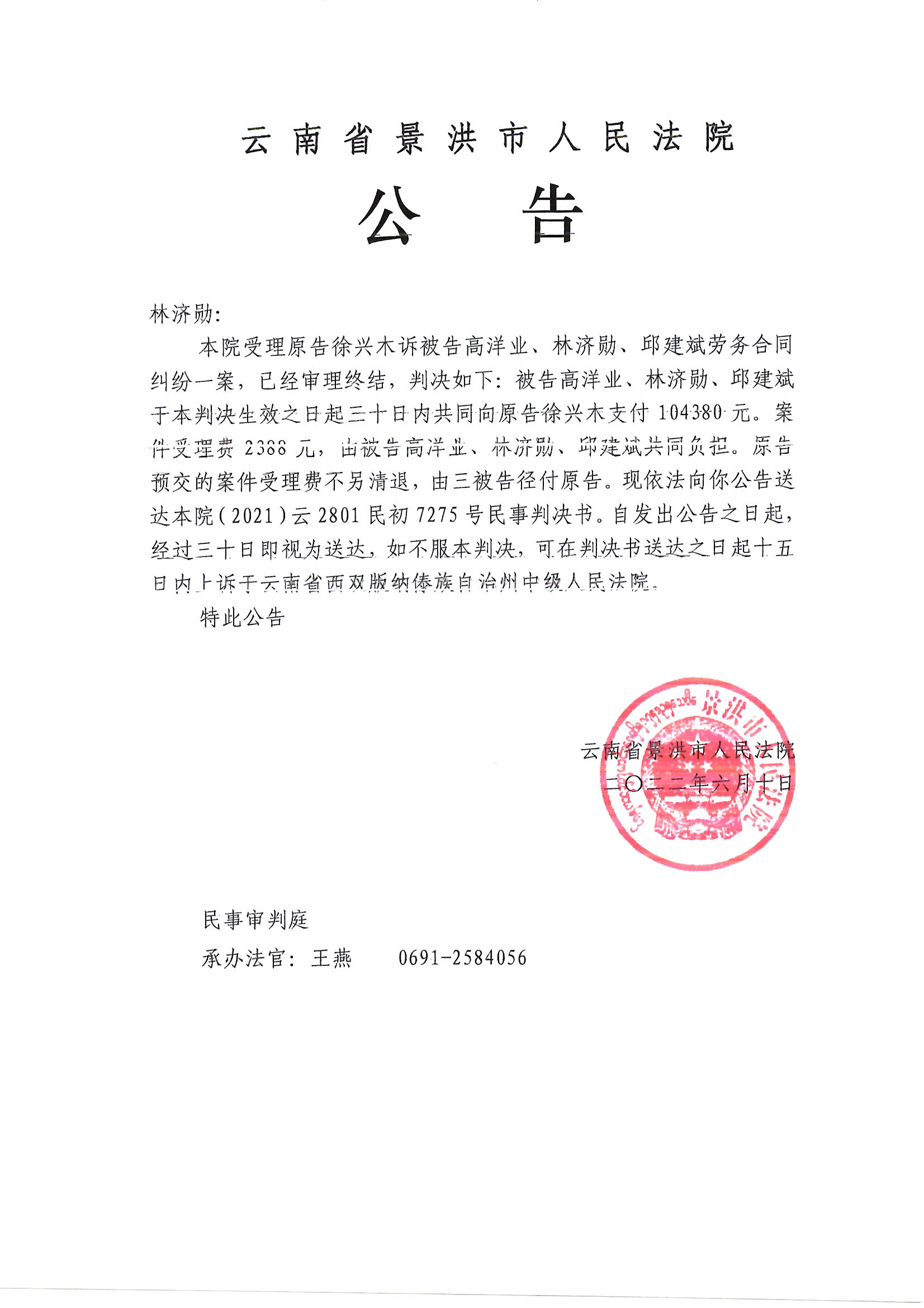 (2021)7275 林济勋 (判决公告)