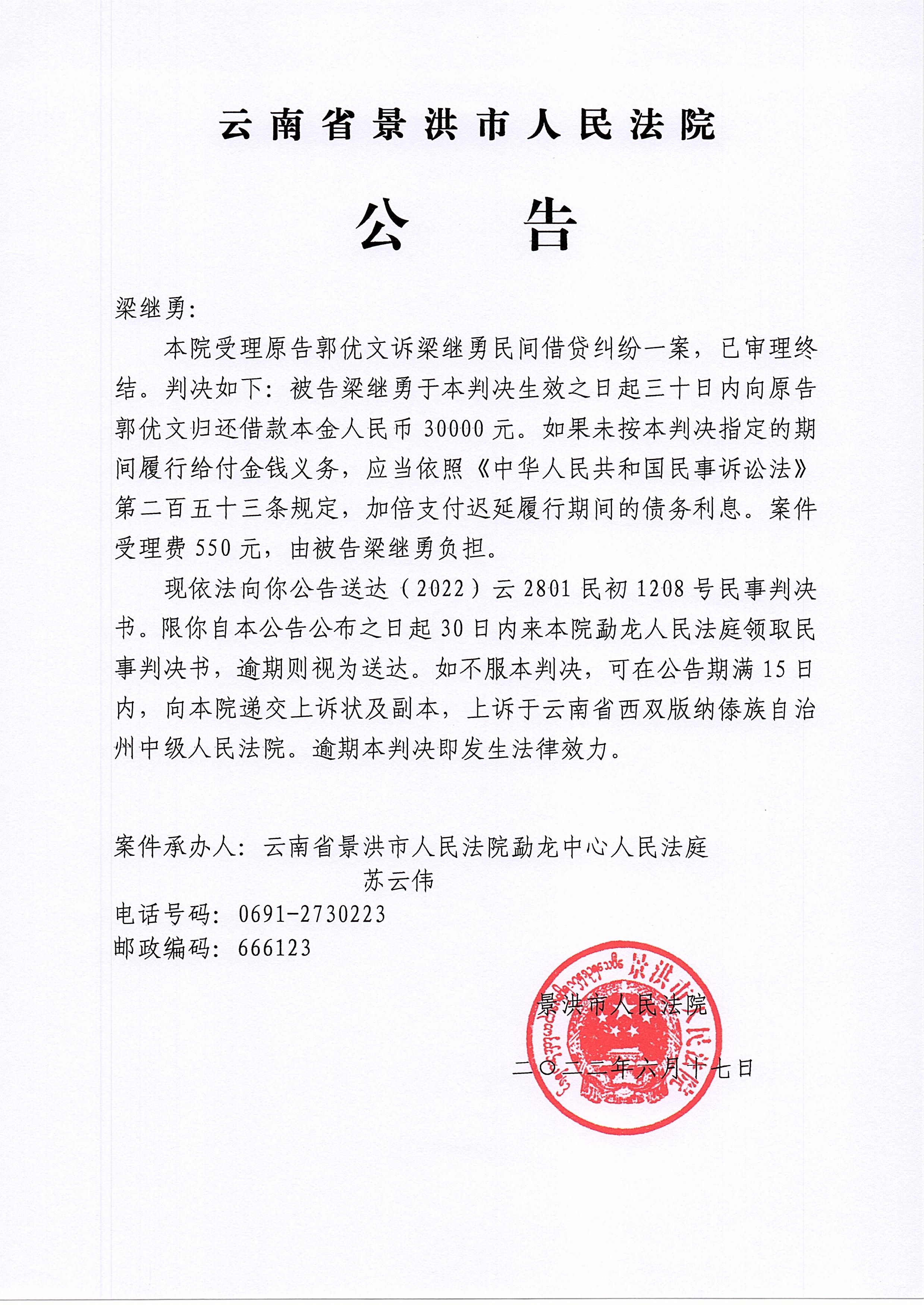 作者 :景洪市人民法院勐龙人民法庭 来源:本站原创 访问次数 :