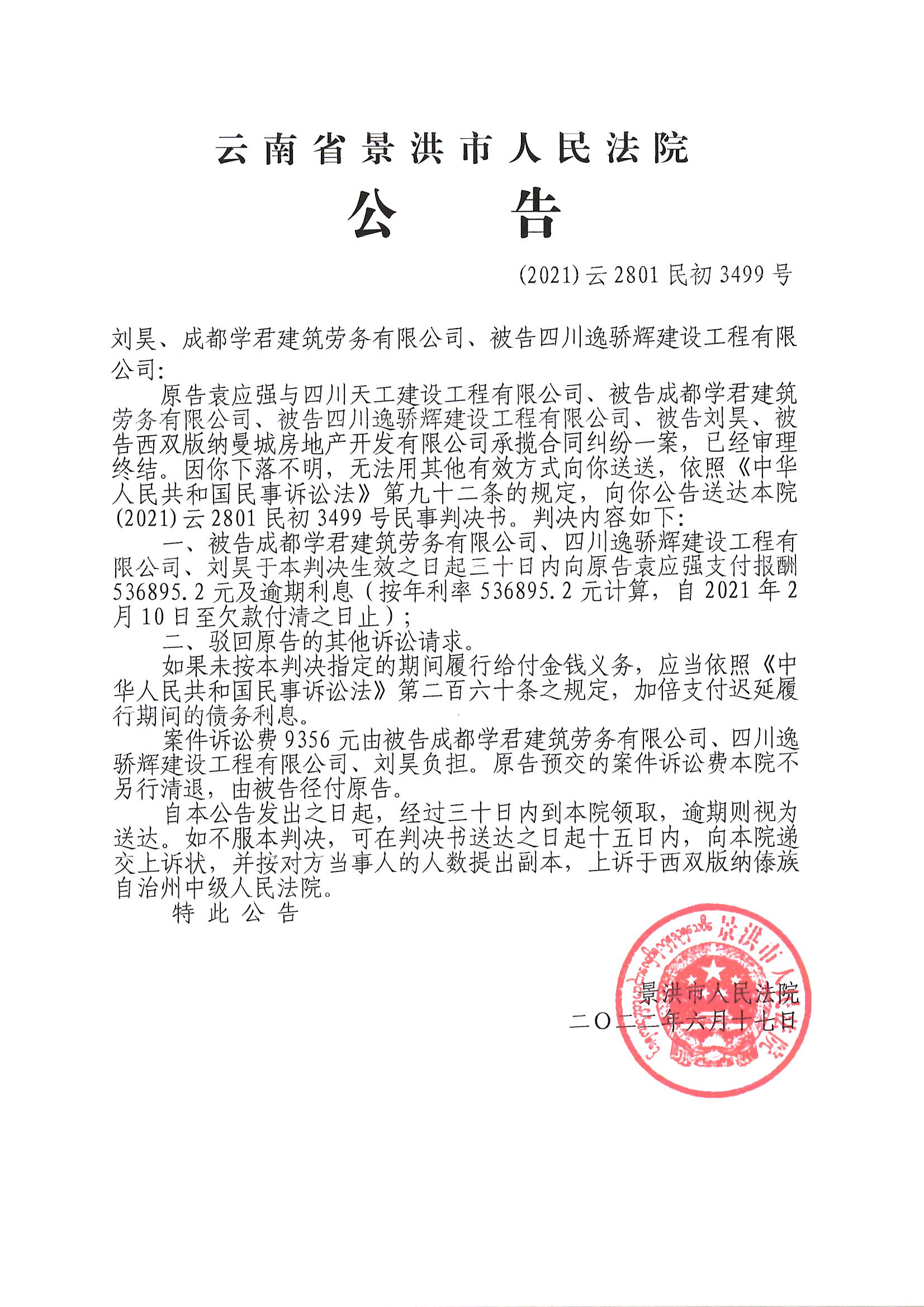 刘昊、四川逸骄辉建设工程有限公司、成都学君建筑劳务有限公司(5516、3442、3500、3499判决公告)