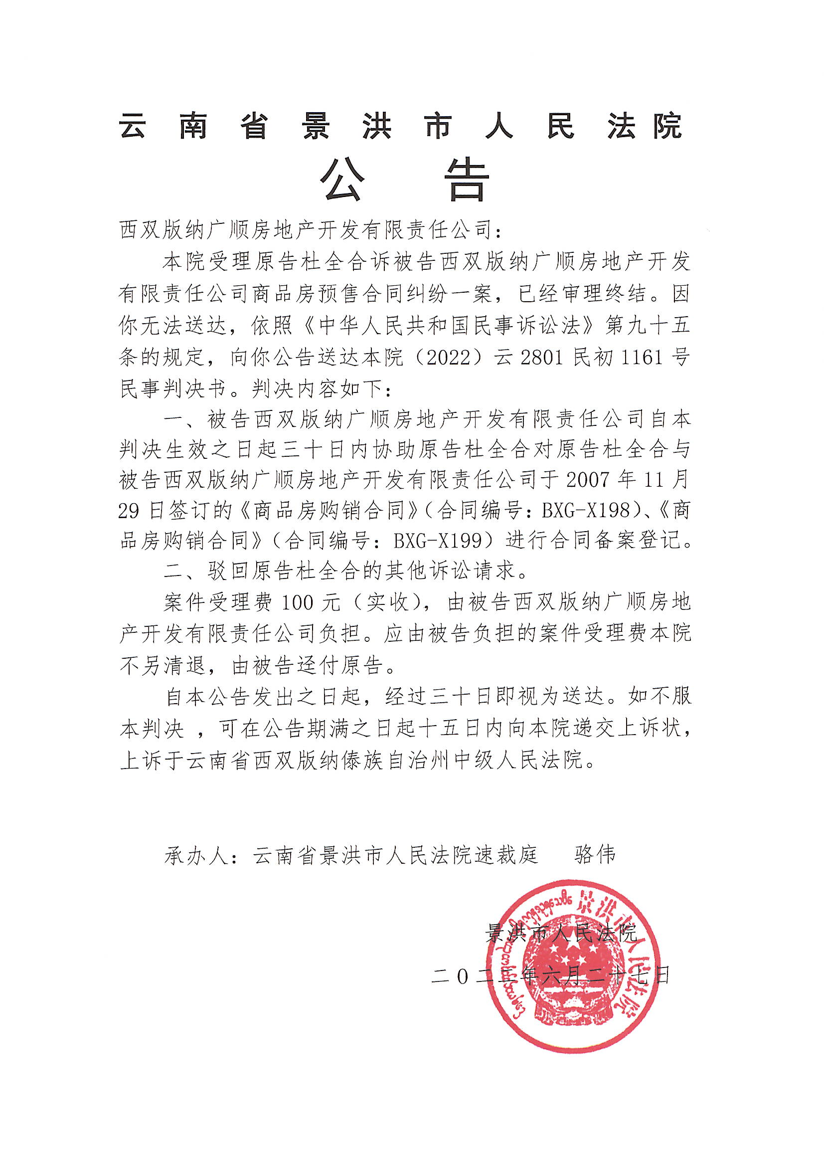 西双版纳广顺房地产开发有限责任公司(判决公告)