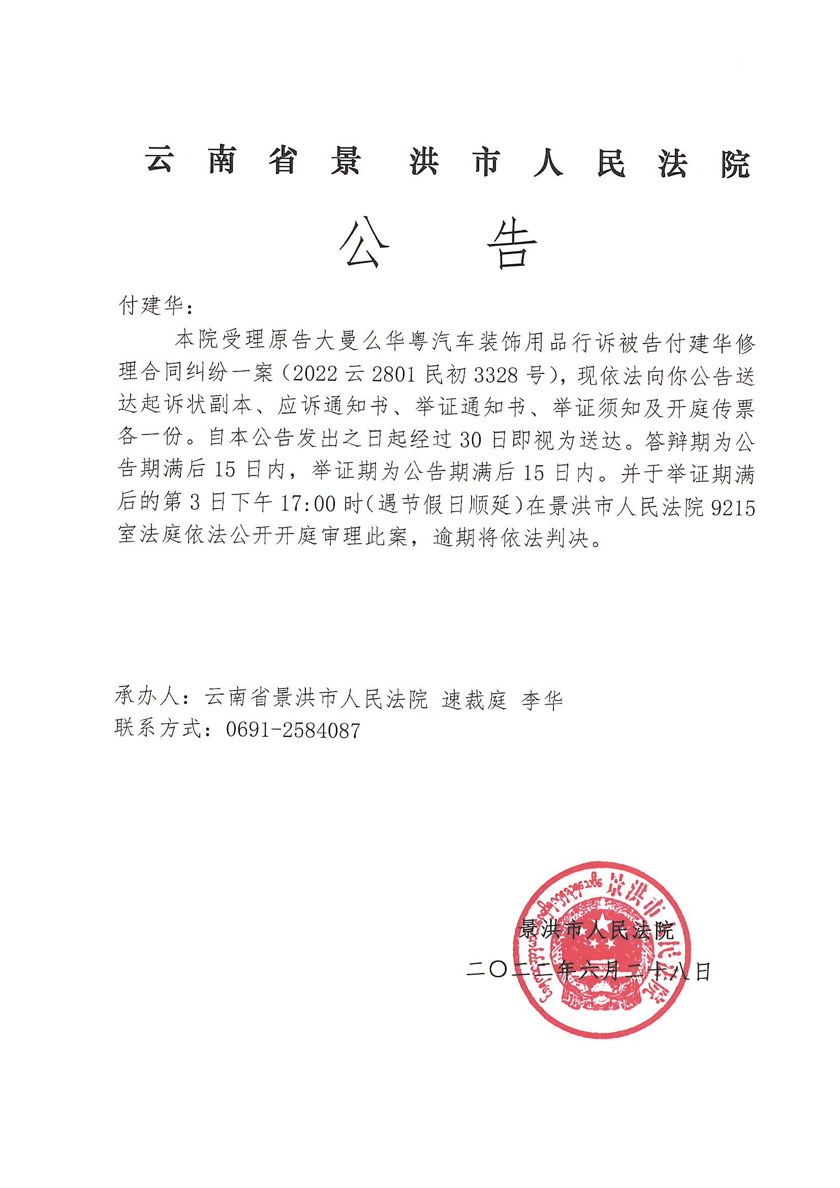 付建华(传票公告)