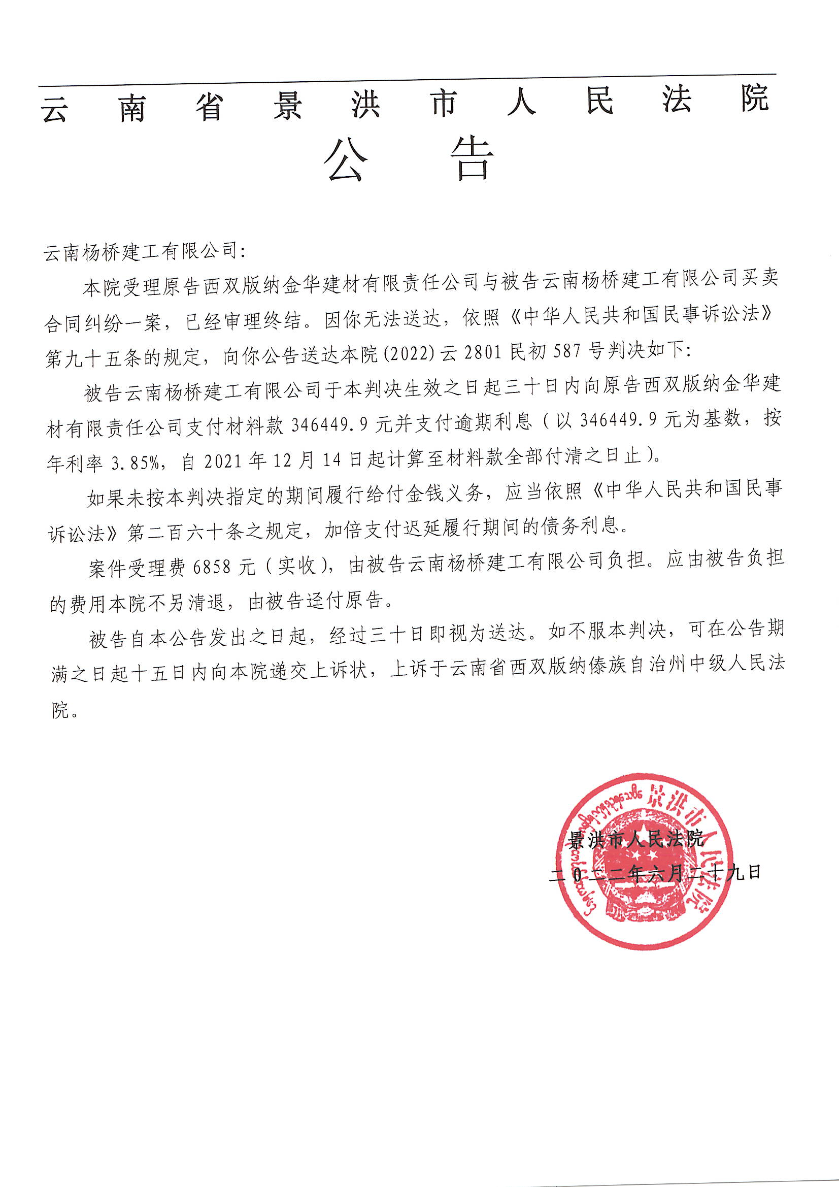 云南杨桥建工有限公司(判决公告)