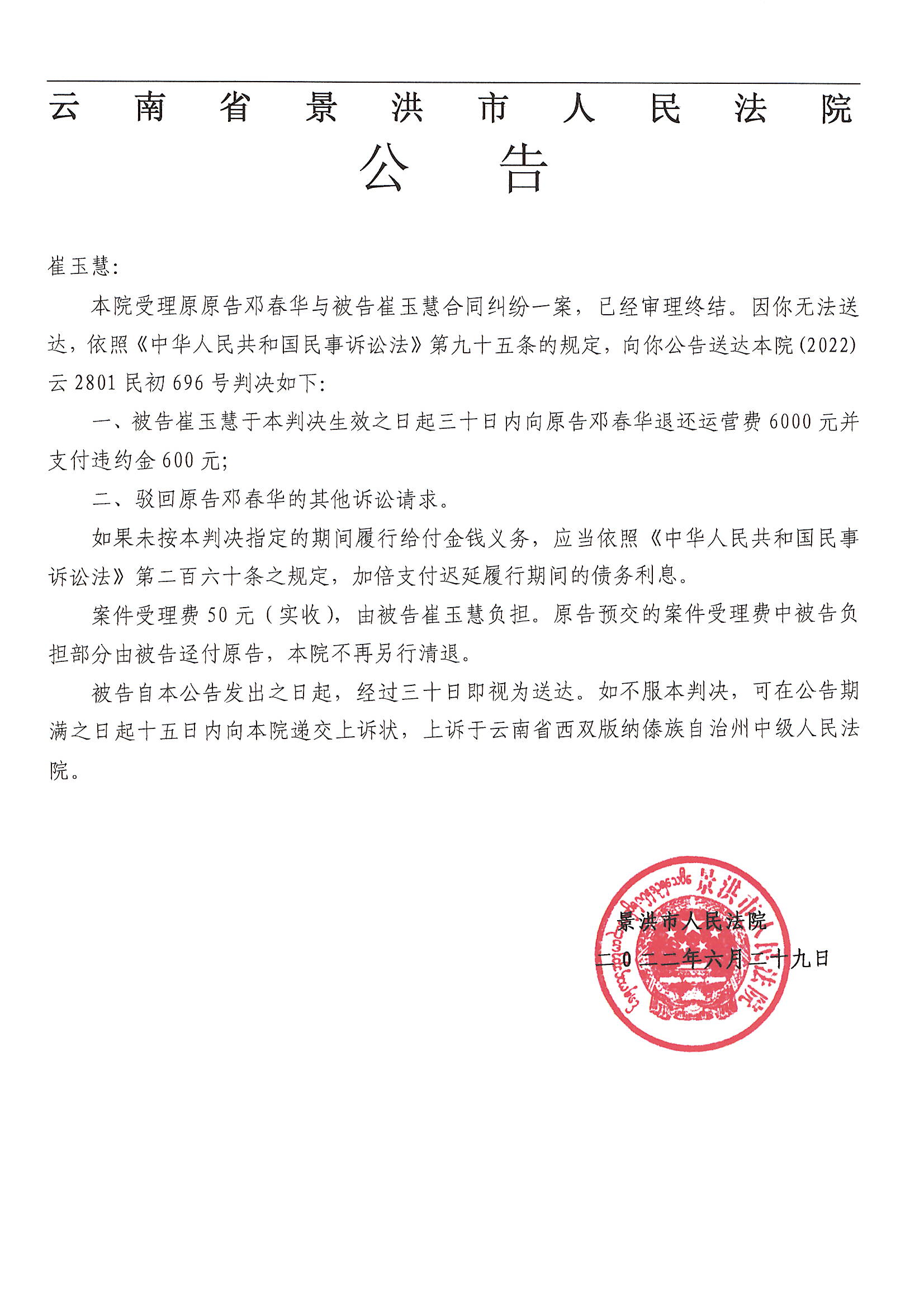 崔玉慧(判决公告)