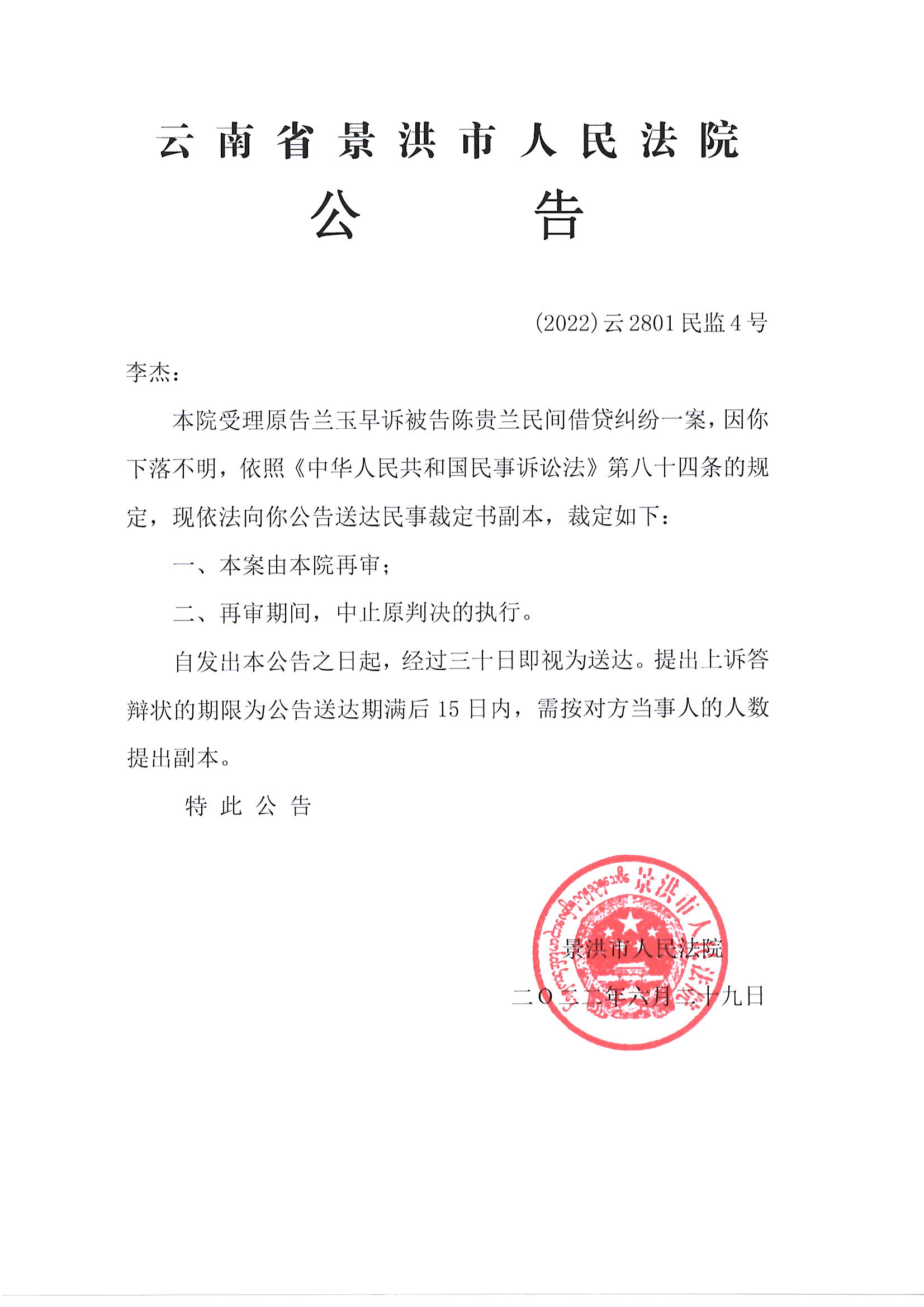李杰公告