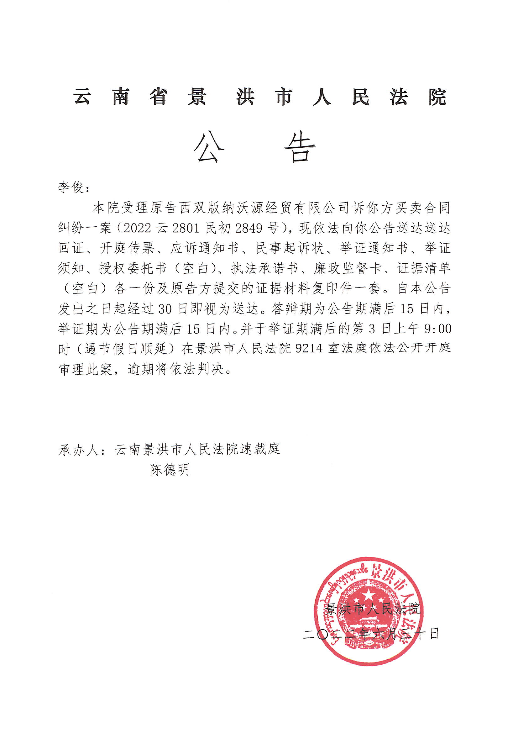 李俊(传票公告)