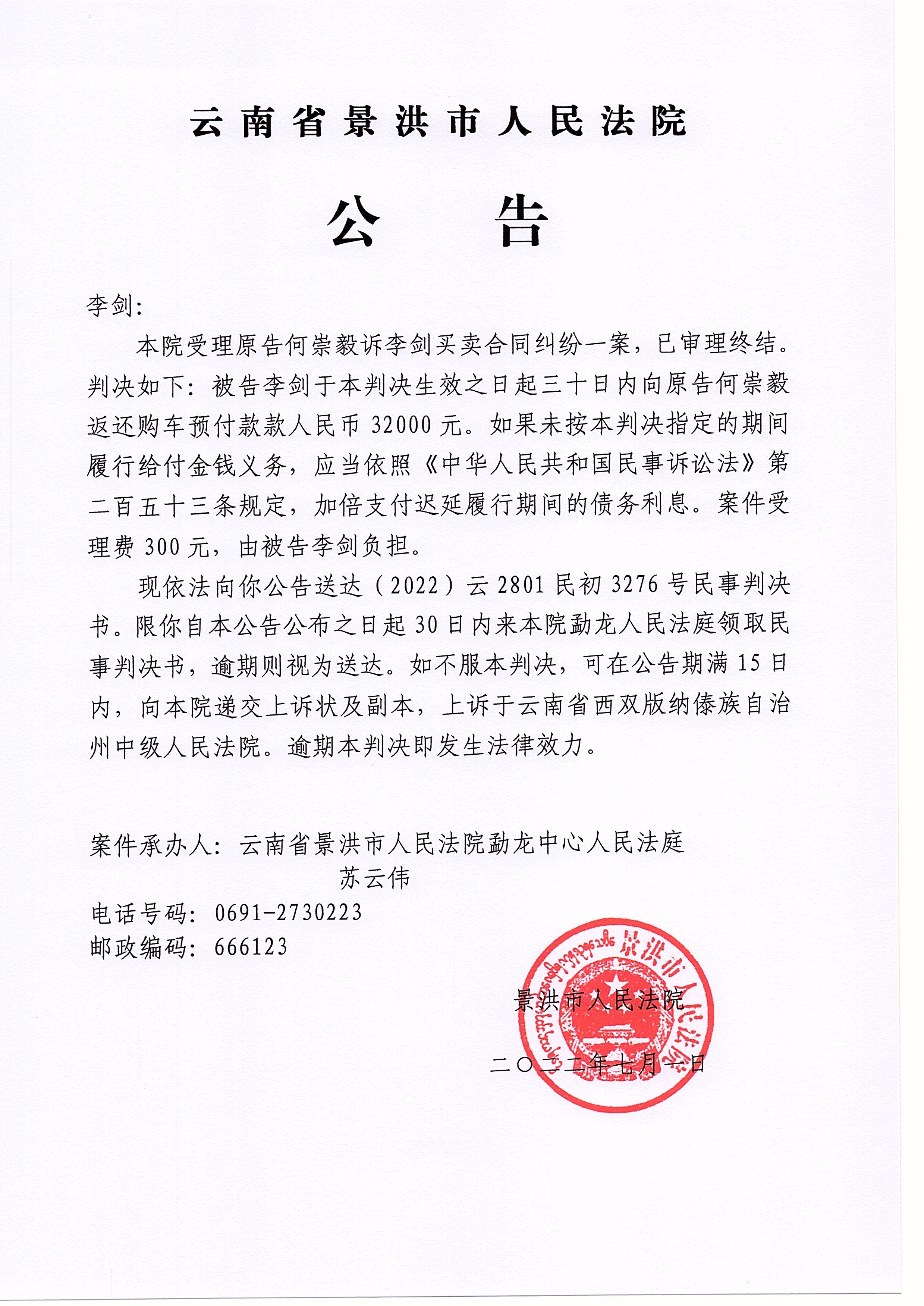 李剑(判决公告)