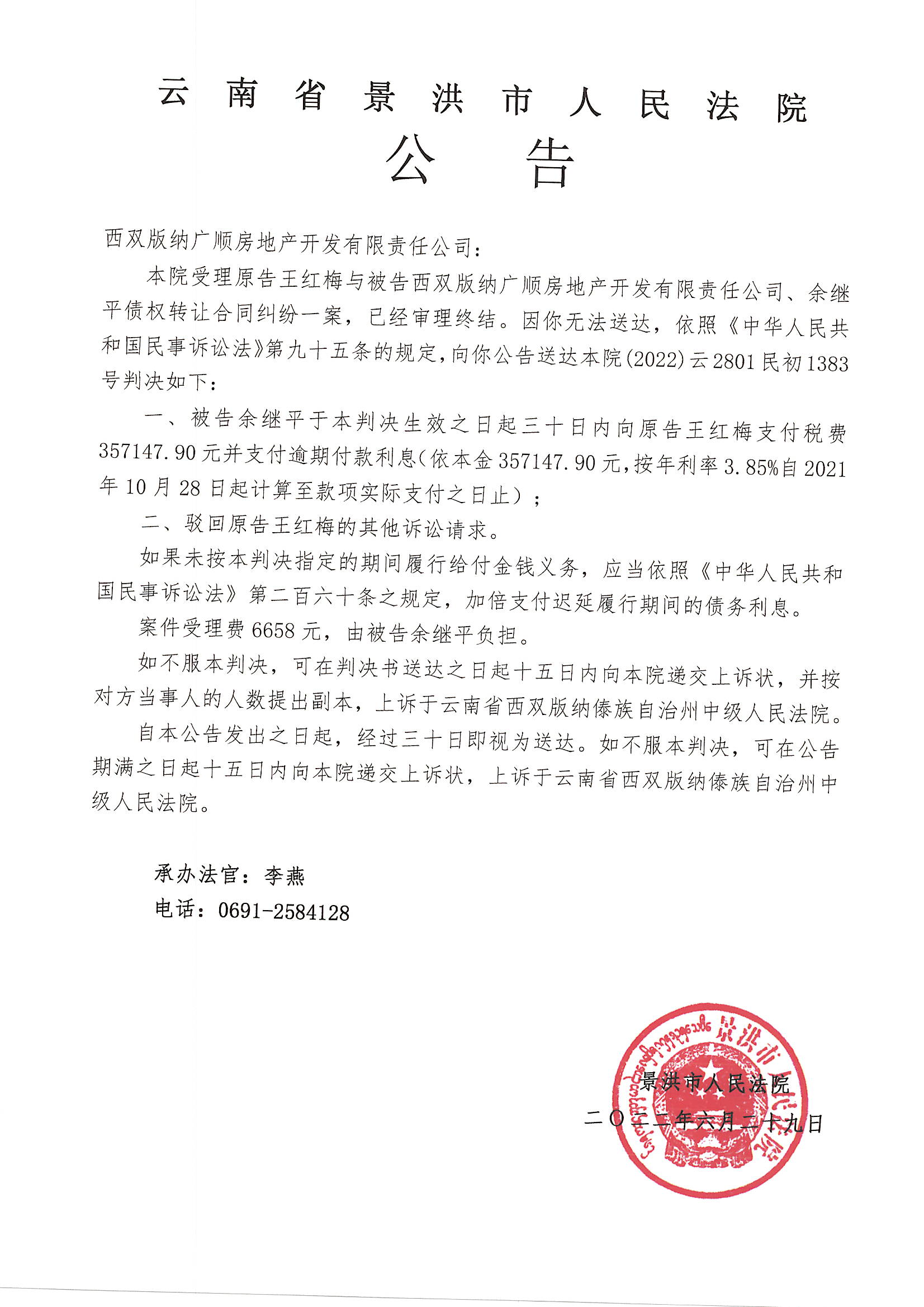 西双版纳广顺房地产开发有限责任公司(判决公告)