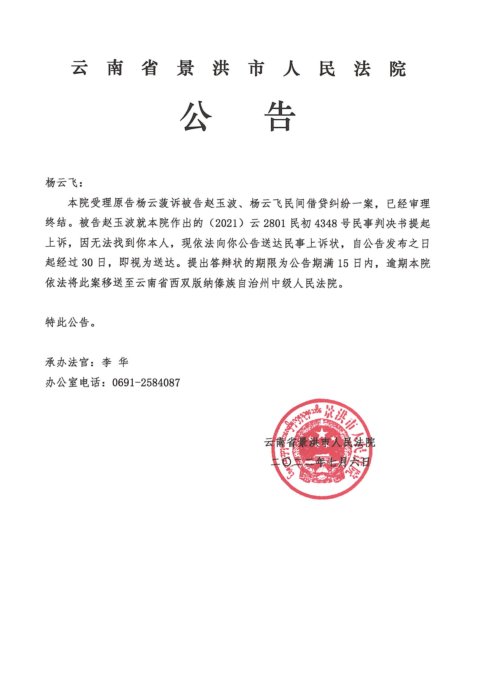 杨云飞(上诉状公告)