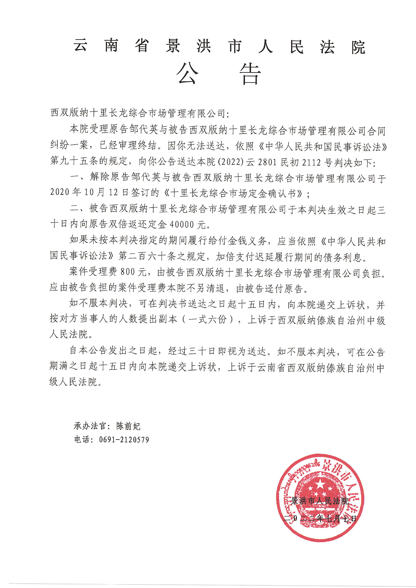 西双版纳十里长龙综合市场管理有限公司(判决)