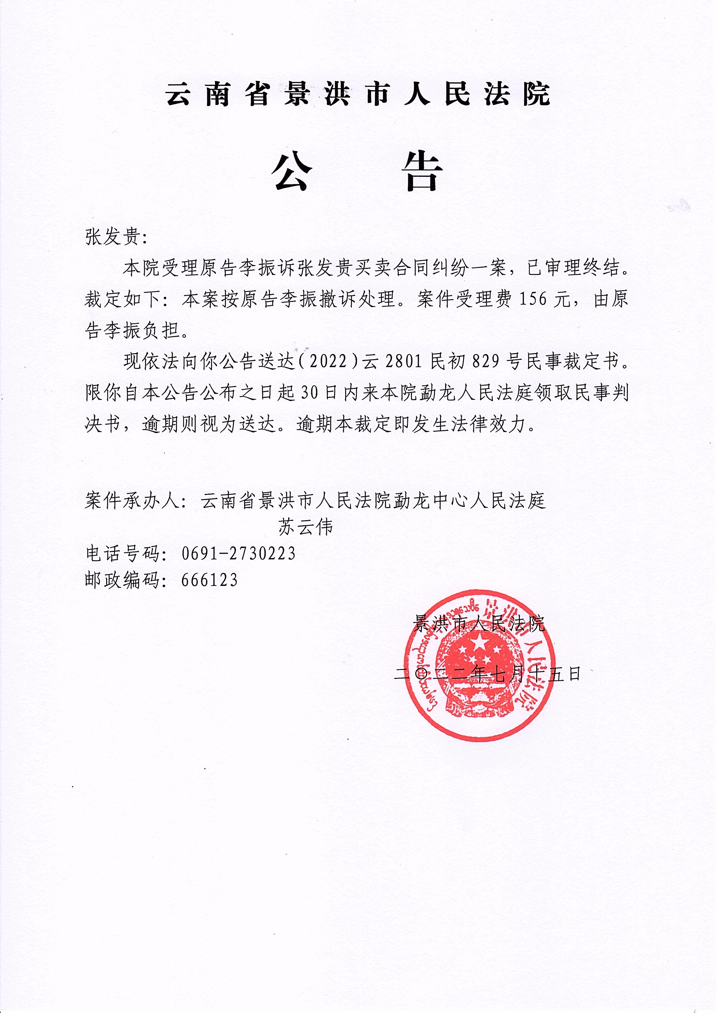 作者 :景洪市人民法院勐龙人民法庭 来源:本站原创 访问次数 :