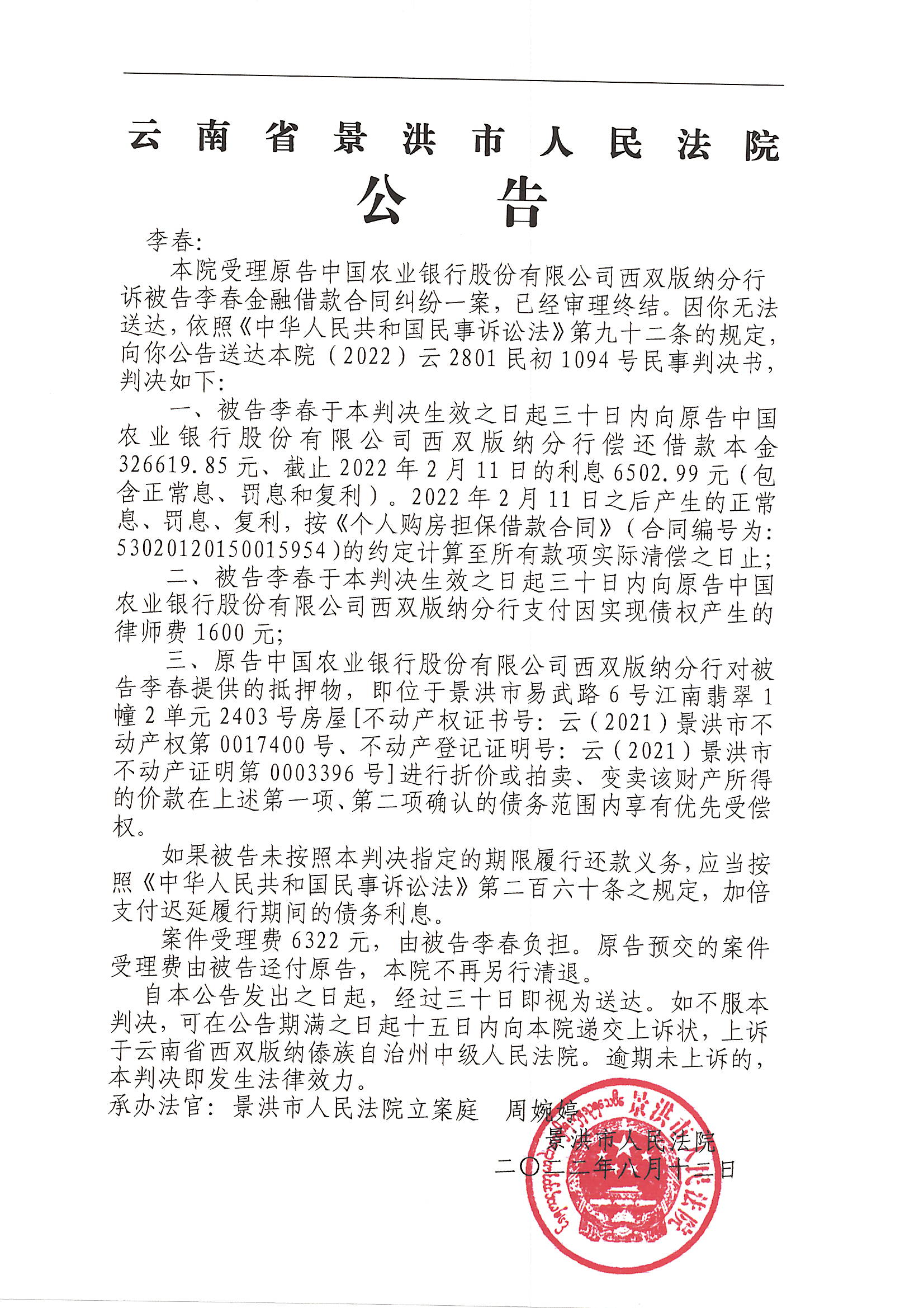 李春(判决公告)