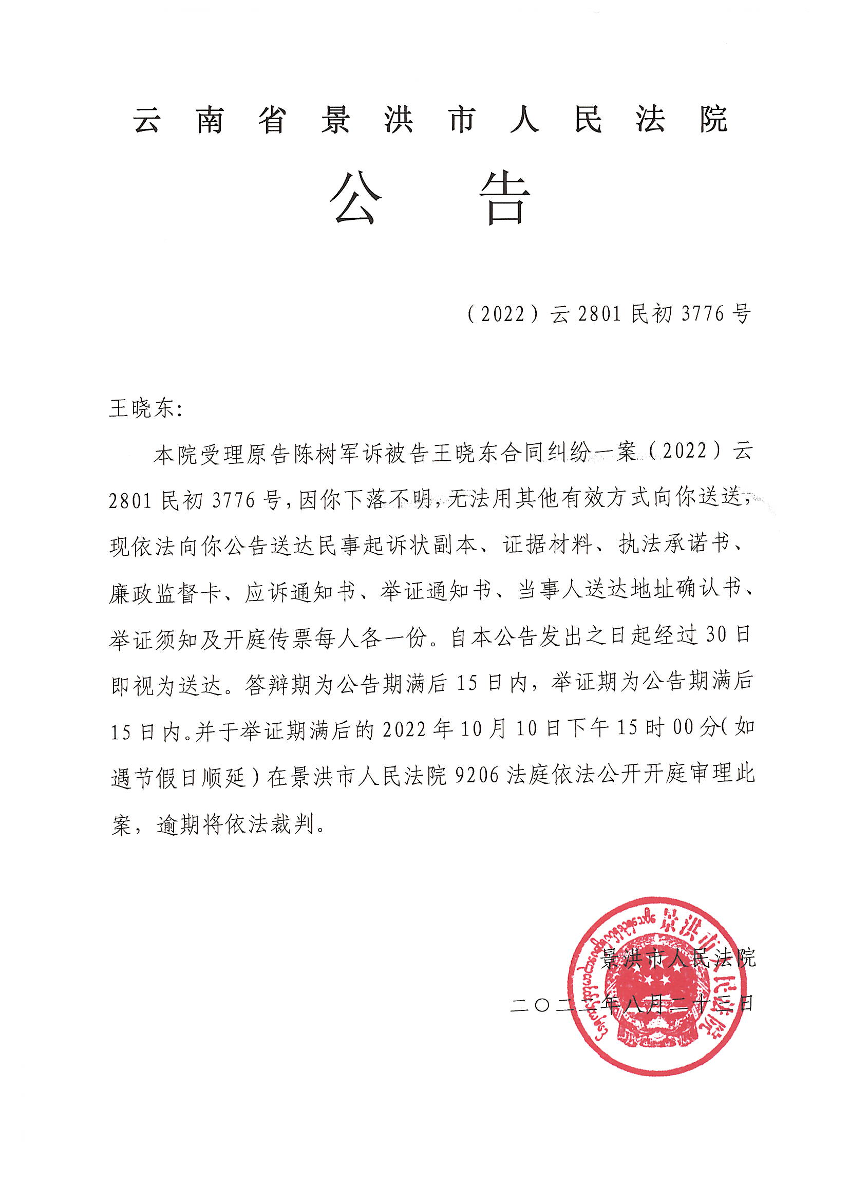 王晓东(开庭公告)