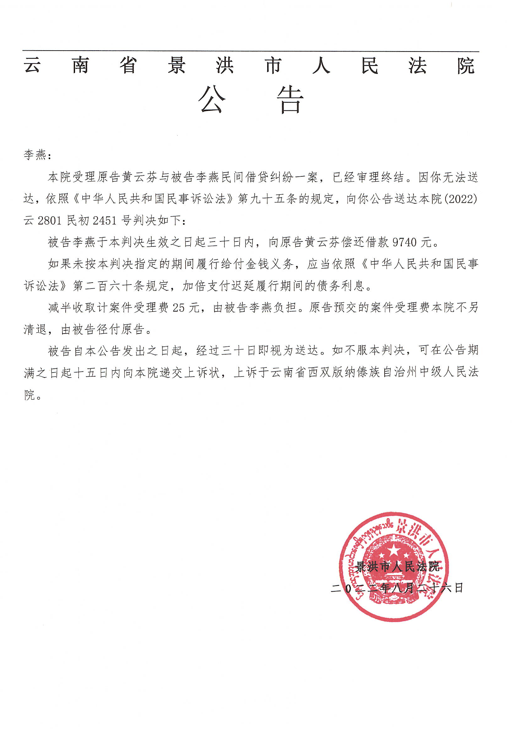 李燕(判决公告)