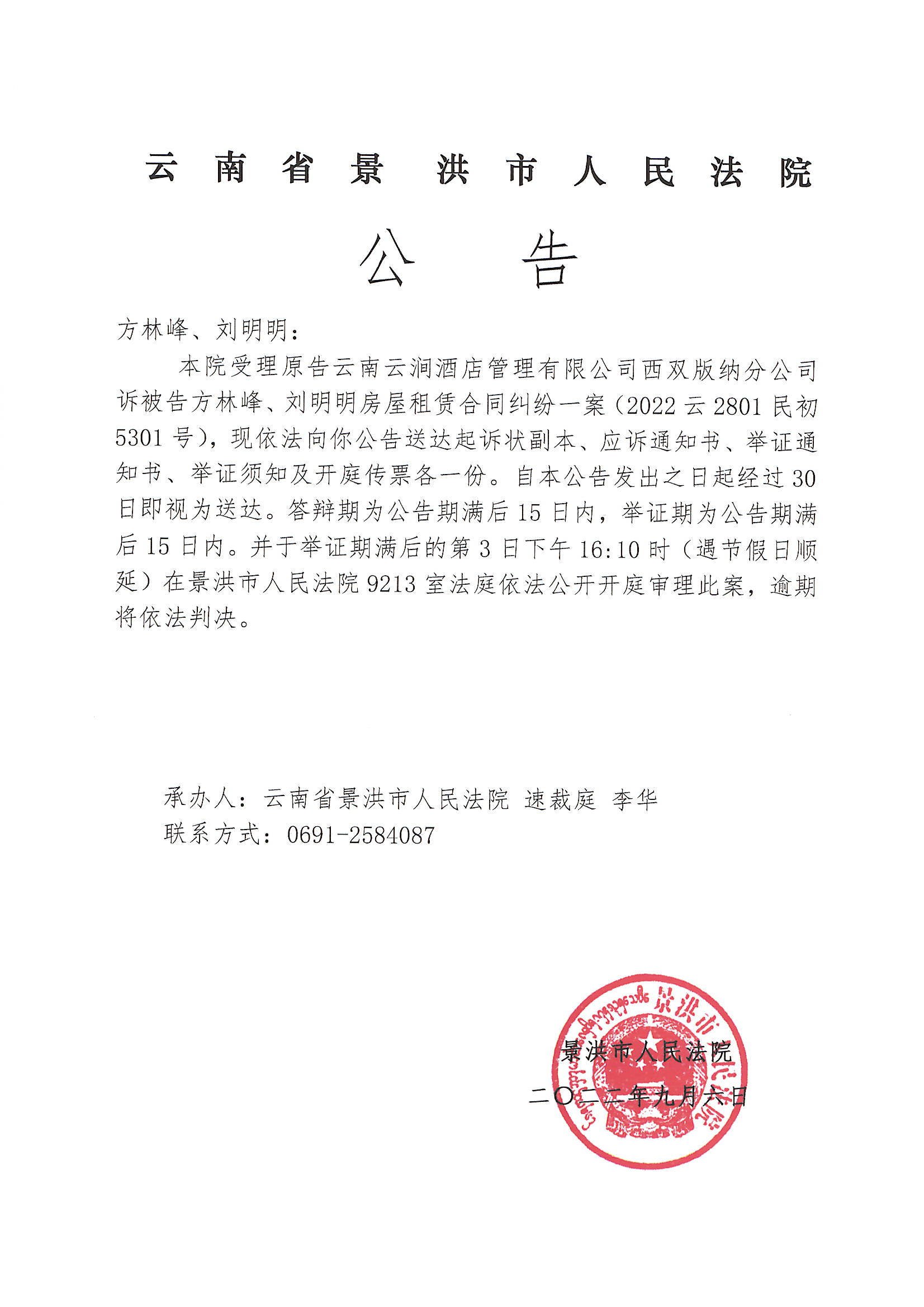 方林峰、刘明明(传票公告)