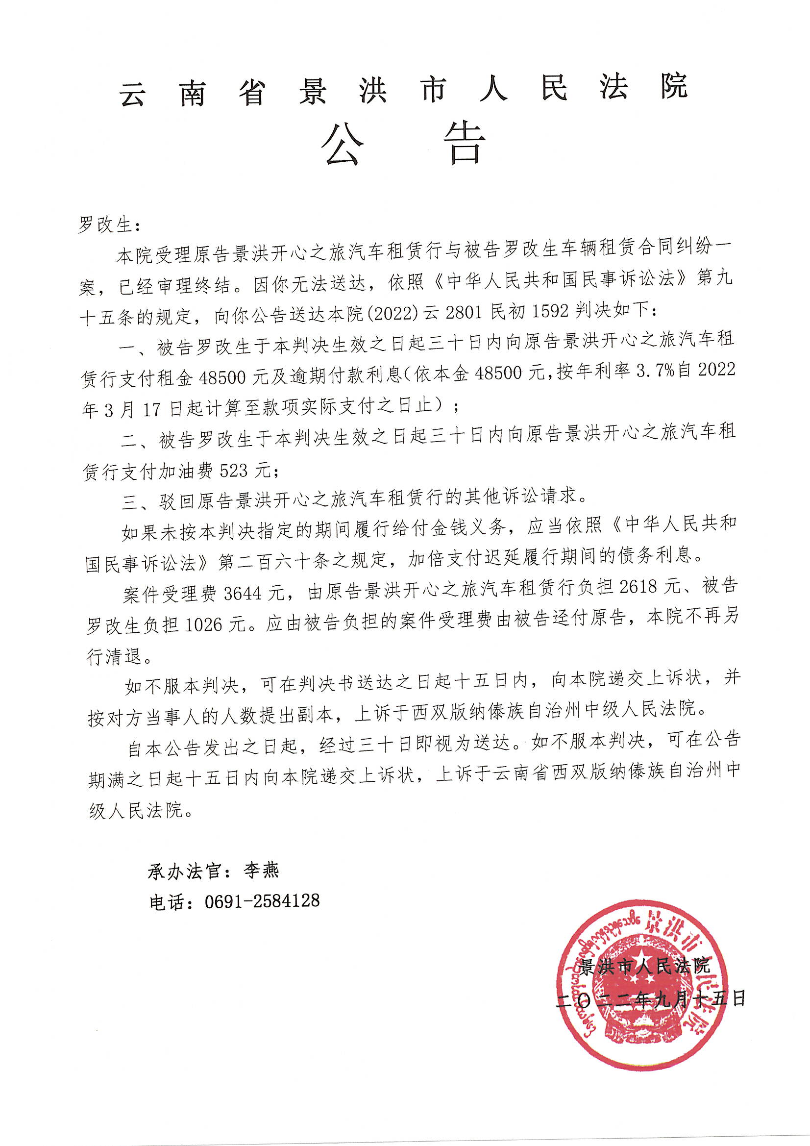 罗改生(判决公告)