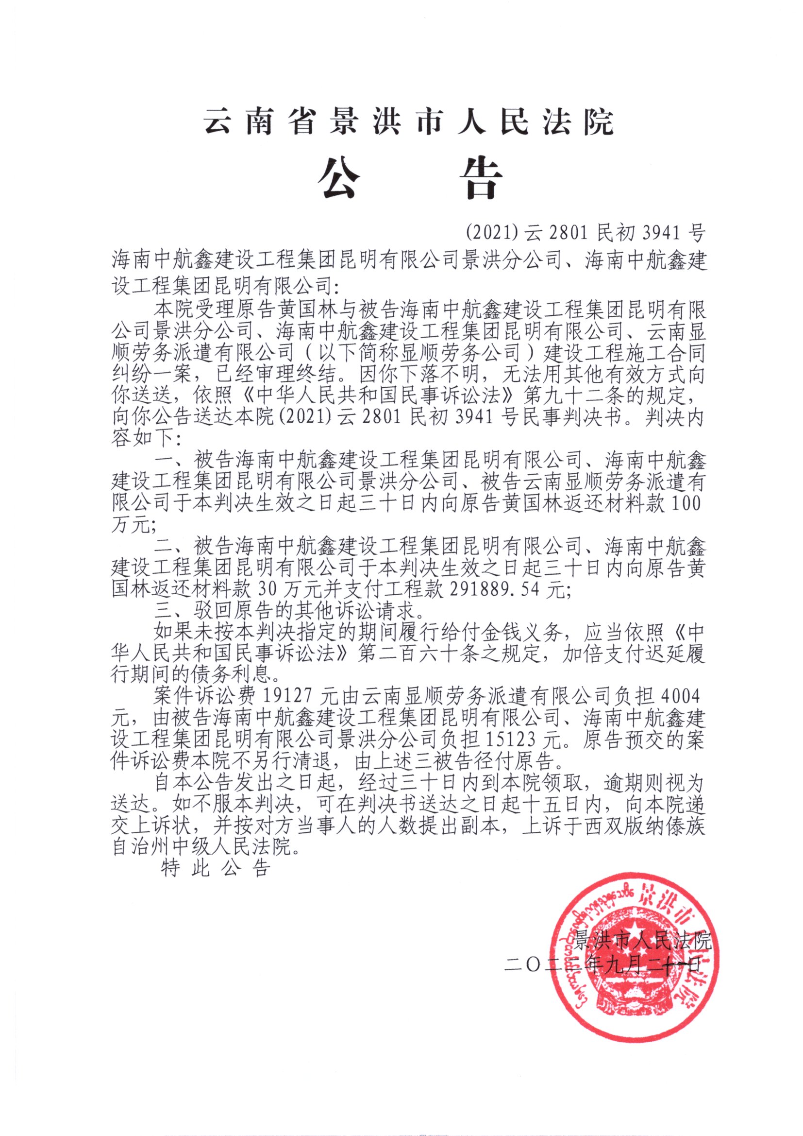 海南中航鑫建设工程集团昆明有限公司景洪分公司、海南中航鑫建设工程集团昆明有限公司(判决公告)