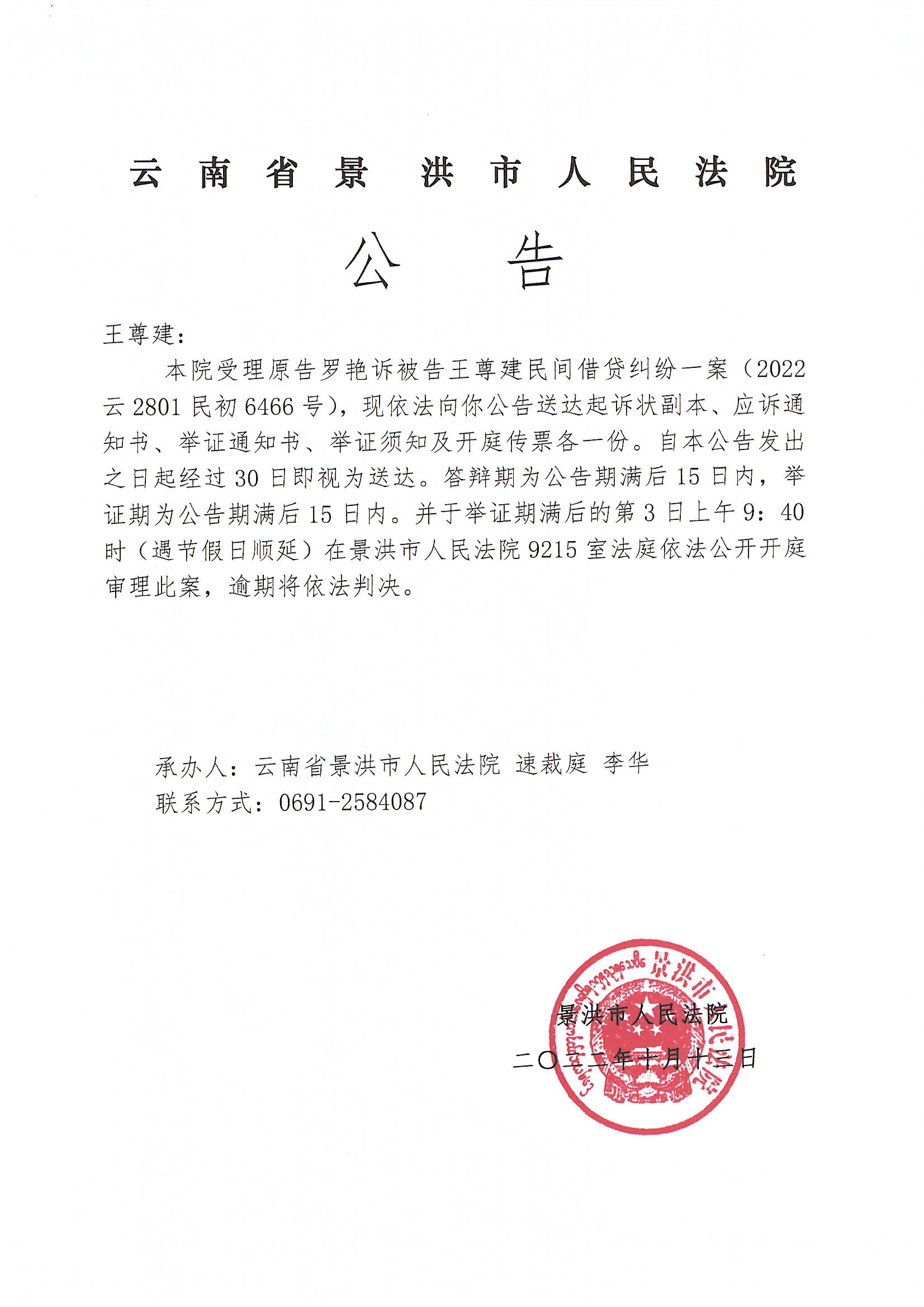 王尊建(传票公告)