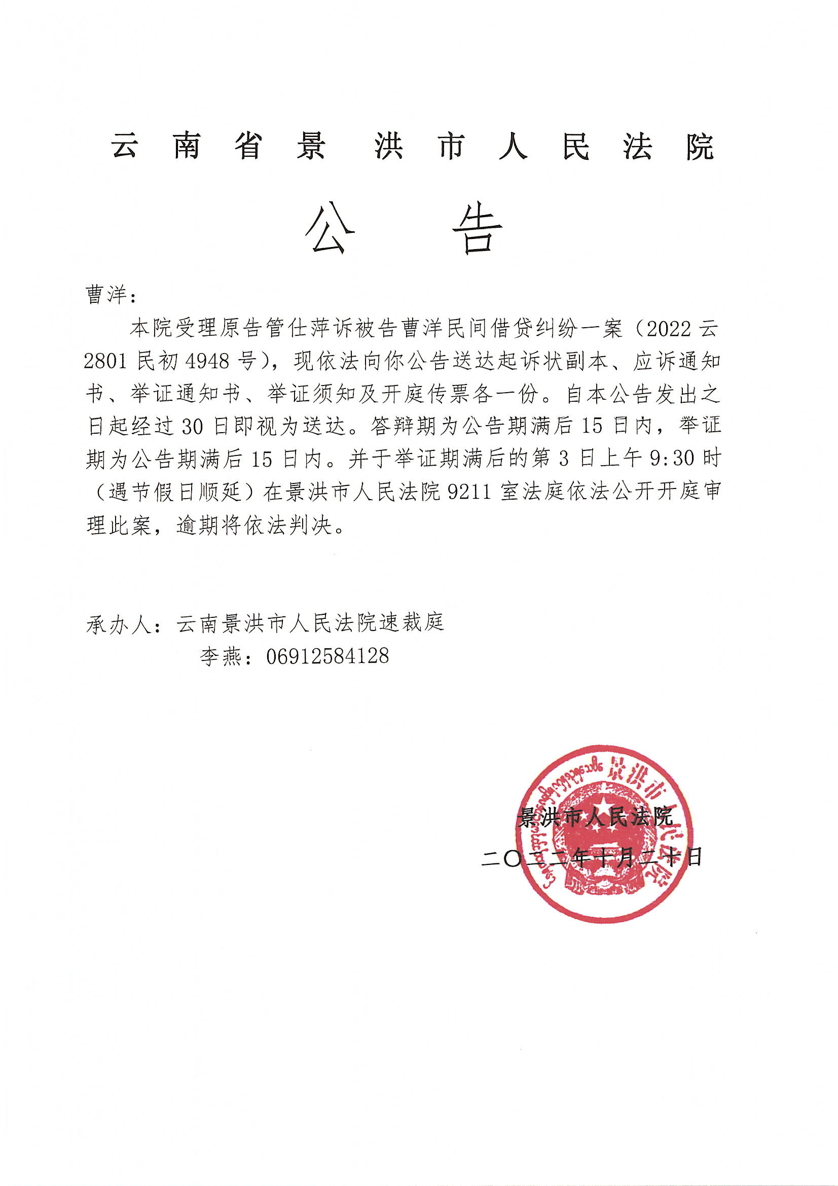 曹洋(开庭公告)