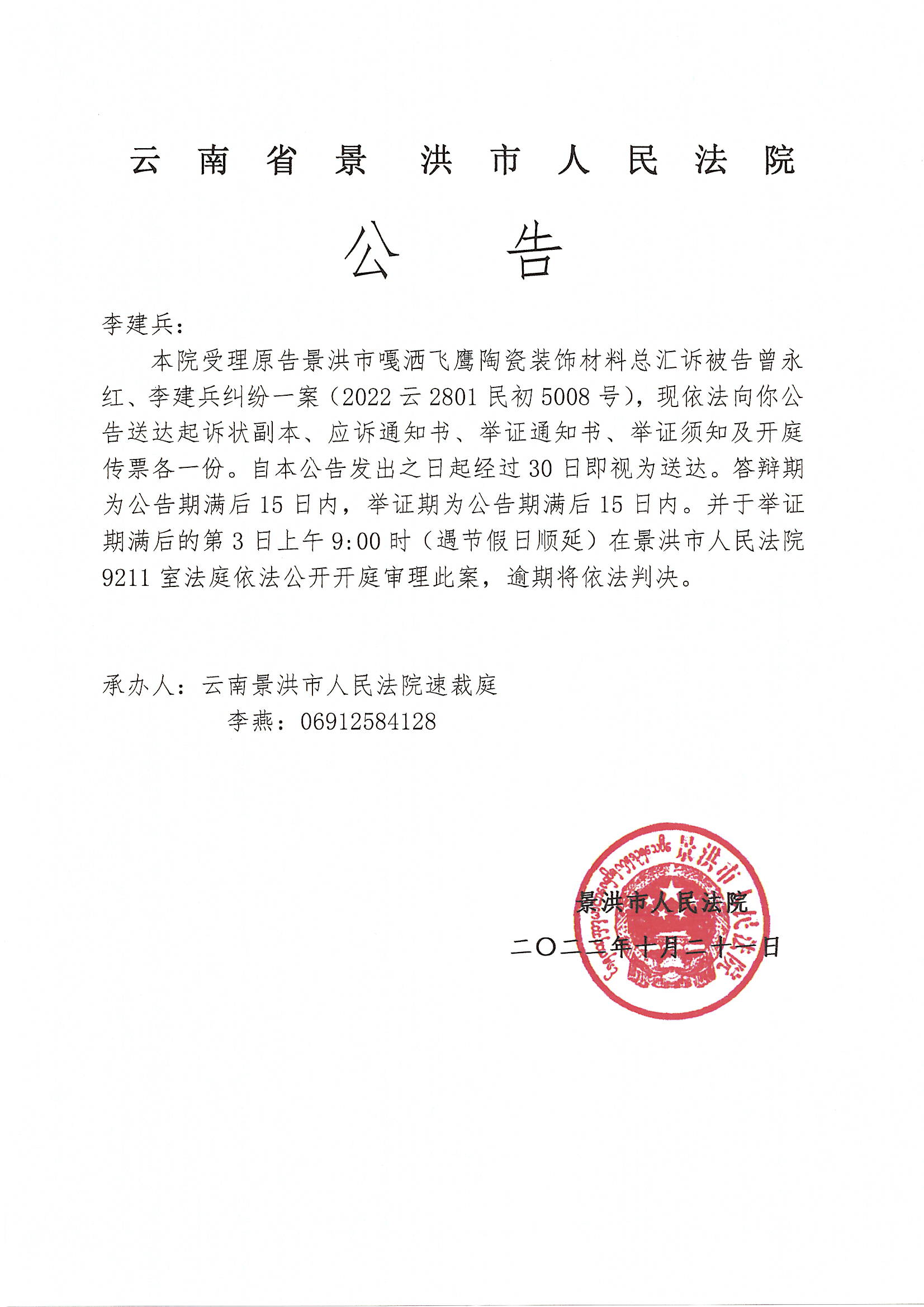 李建兵(开庭公告)