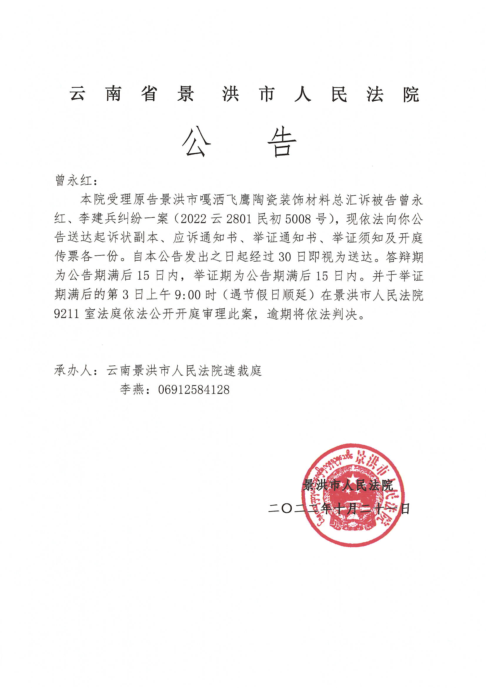 曾永红(开庭公告)