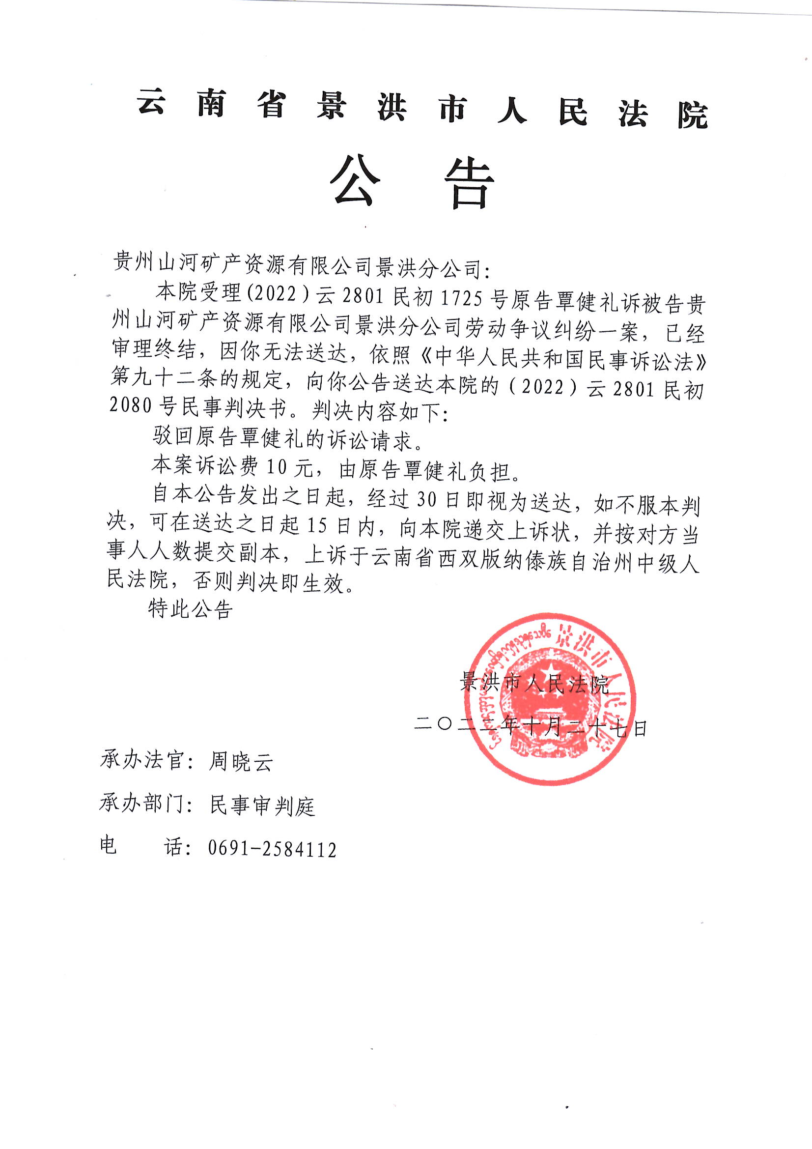贵州山河矿产资源有限公司景洪分公司(判决公告)