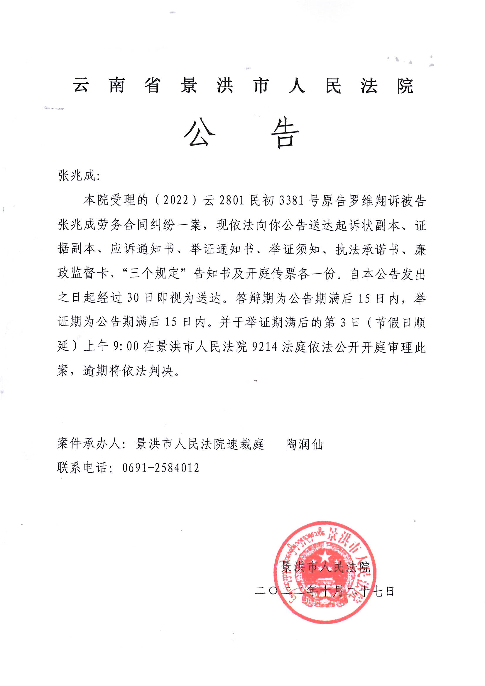 张兆成(传票公告)