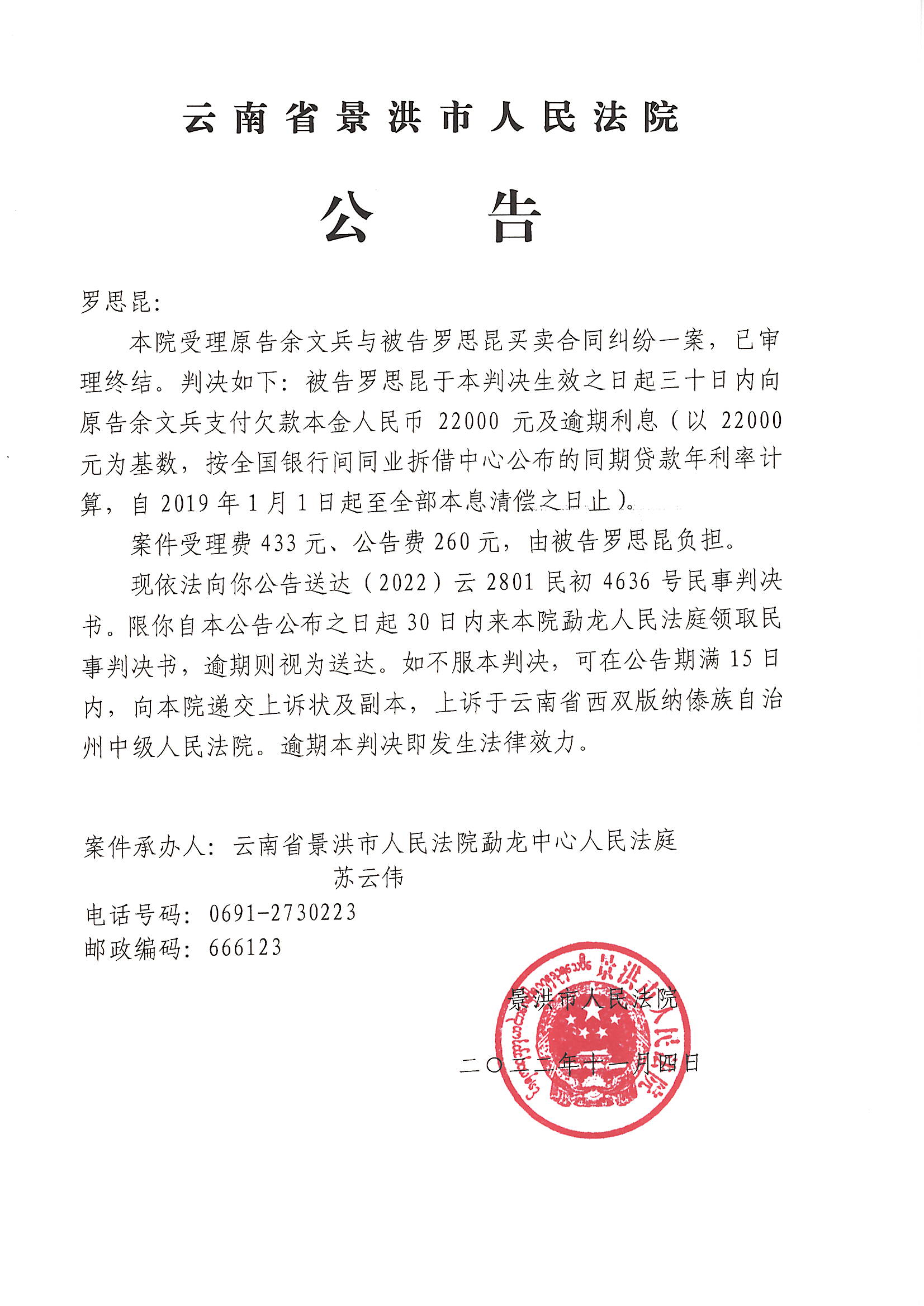 作者 :景洪市人民法院勐龙人民法庭 来源:本站原创 访问次数 :
