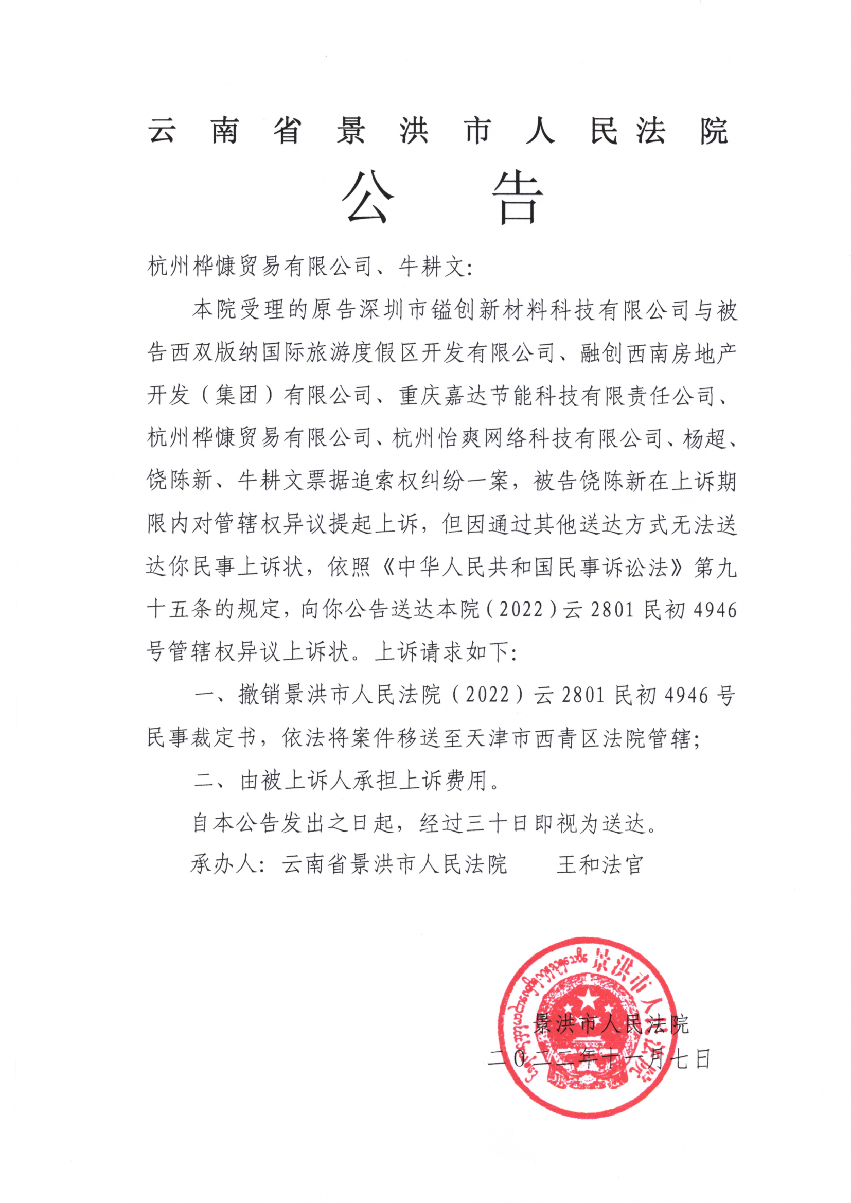 杭州桦慷贸易有限公司、牛耕文(上诉状公告)
