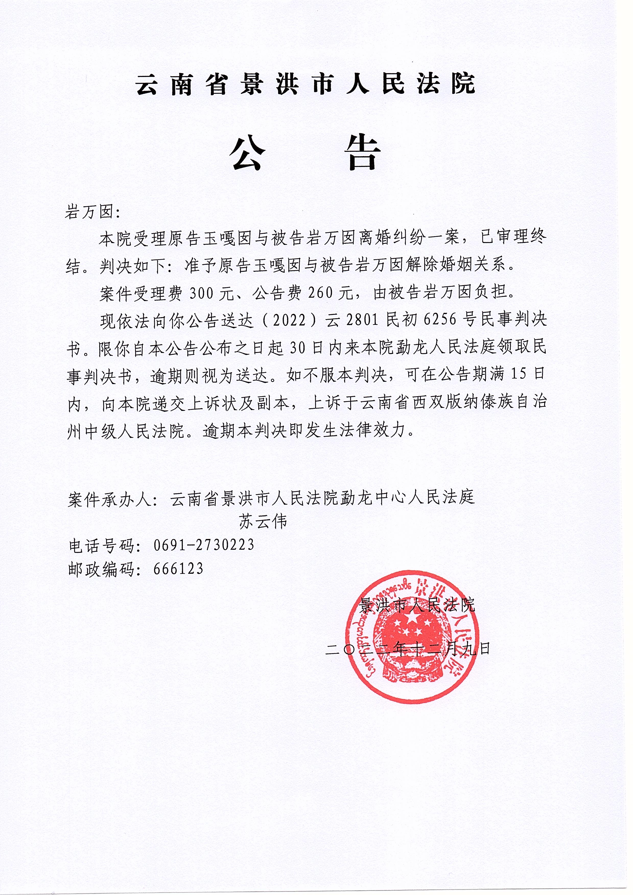 作者 :景洪市人民法院勐龙人民法庭 来源:本站原创 访问次数 :