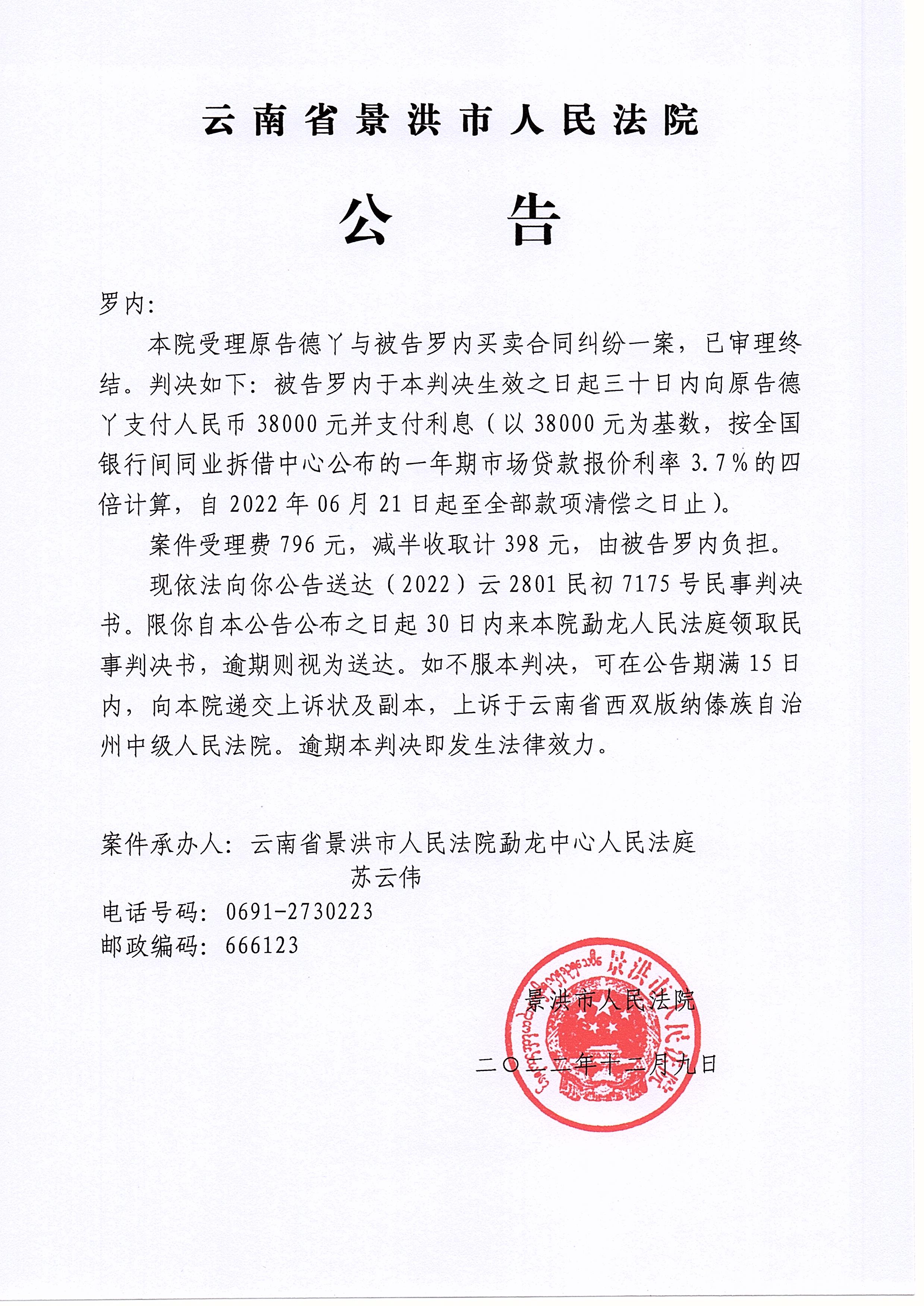 作者 :景洪市人民法院勐龙人民法庭 来源:本站原创 访问次数 :